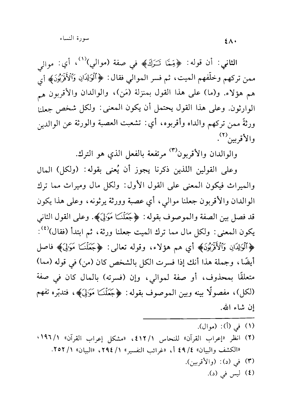 وقوله تعالى: {فَآتُوهُمْ نَصِيبَهُمْ}. أي حظهم من الميراث. عن ابن عباس وسعيد بن جبير وقتادة وعامر والضحاك (¬6). ثم نسخ ذلك بقوله: {وَأُولُو الْأَرْحَامِ بَعْضُهُمْ أَوْلَى بِبَعْضٍ} [الأنفال: 75].