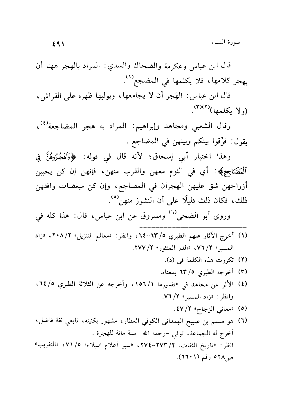 (¬7) عن الكلبي انظر: "تنوير المقباس" بهامش المصحف ص 84، أما عن سفيان فأخرجه الطبري 5/ 70 بنحوه، وانظر: "الكشف والبيان" 4/ 51 ب، والبغوي 2/ 208، و"زاد المسير" 2/ 76.