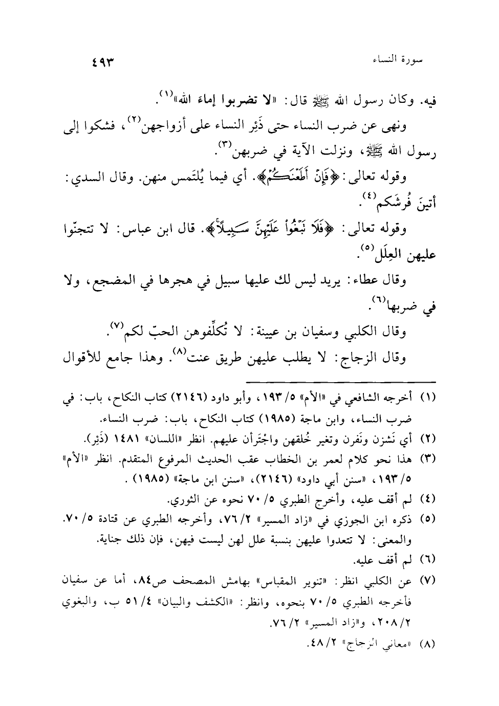 (¬7) لم أقف عليه، وانظر: "بحر العلوم" 1/ 352، و"القرطبي" 5/ 175، و"ابن كثير" 2/ 539.