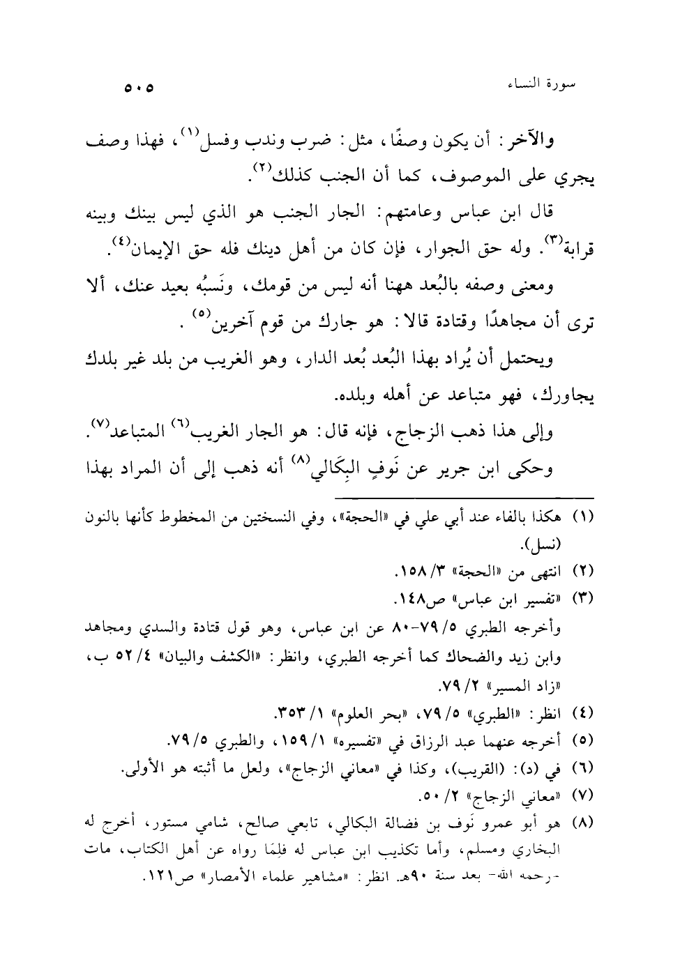 (¬5) "غريب القرآن" لابن قتيبة ص 119، وانظر الطبري 5/ 84، "بحر العلوم" 1/ 354.