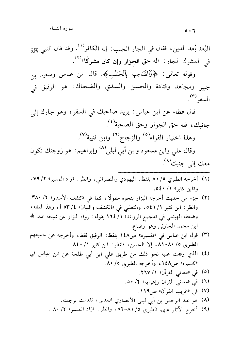 (¬6) "معاني القرآن وإعرابه" 2/ 51، بتصرف، وانظر: الطبري 5/ 85، "إعراب القرآن" للنحاس 1/ 416 - 417، "الدر المصون" 3/ 676.
