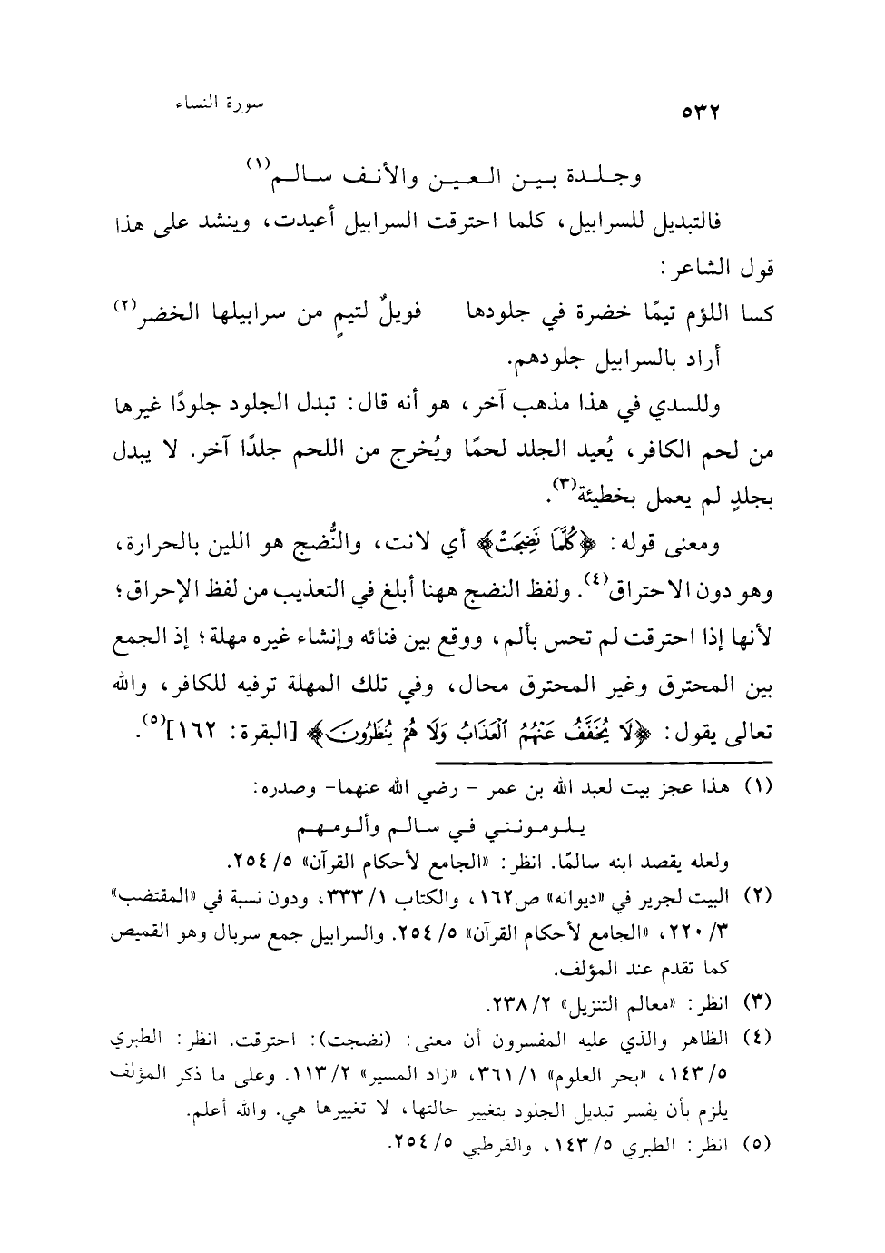 (¬4) انظر: "الوسيط" 2/ 592، "الجامع لأحكام القرآن" 5/ 255، "البحر المحيط" 3/ 275، وفيهما: "السموم" بدل "السمائم".