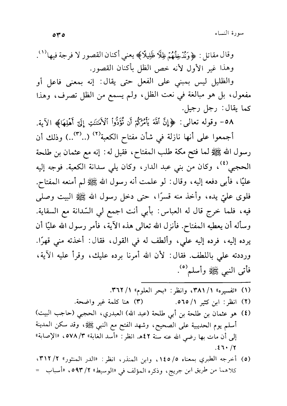 (¬7) انظر: "النكت والعيون" 1/ 400، "زاد المسير" 2/ 114، والقرطبي 5/ 256.