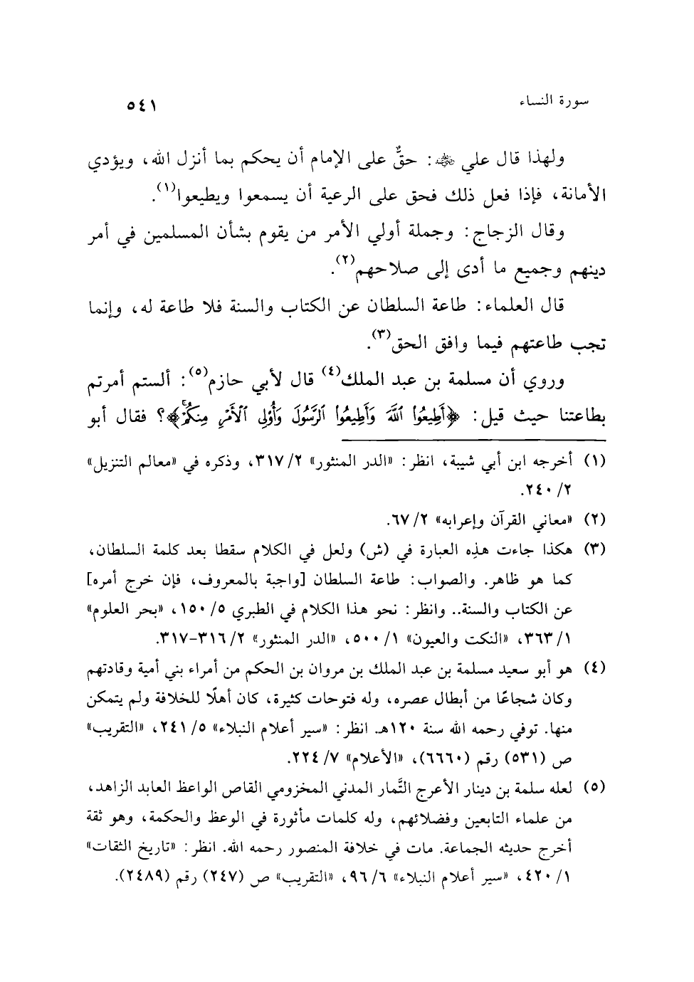 (¬6) انظر في ذلك: الطبري 5/ 151، "النكت والعيون" 1/ 500، "زاد المسير" 2/ 117، وابن كثير 1/ 568، "الدر المنثور" 2/ 315.