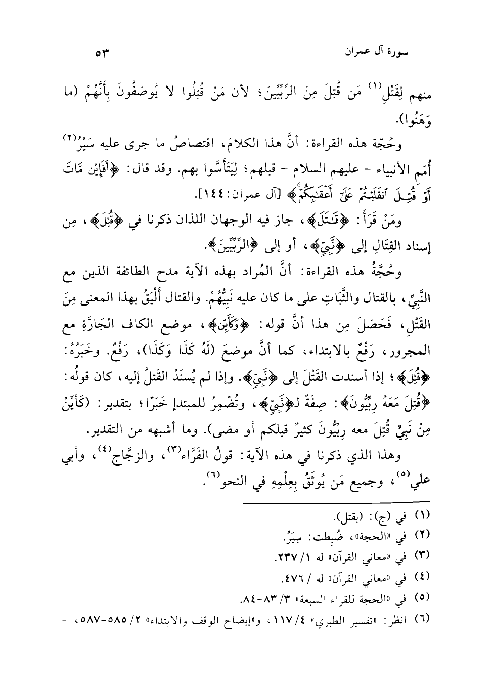 (¬11) في "تفسير غريب القرآن" فيُقال: رِبَّيُّون.