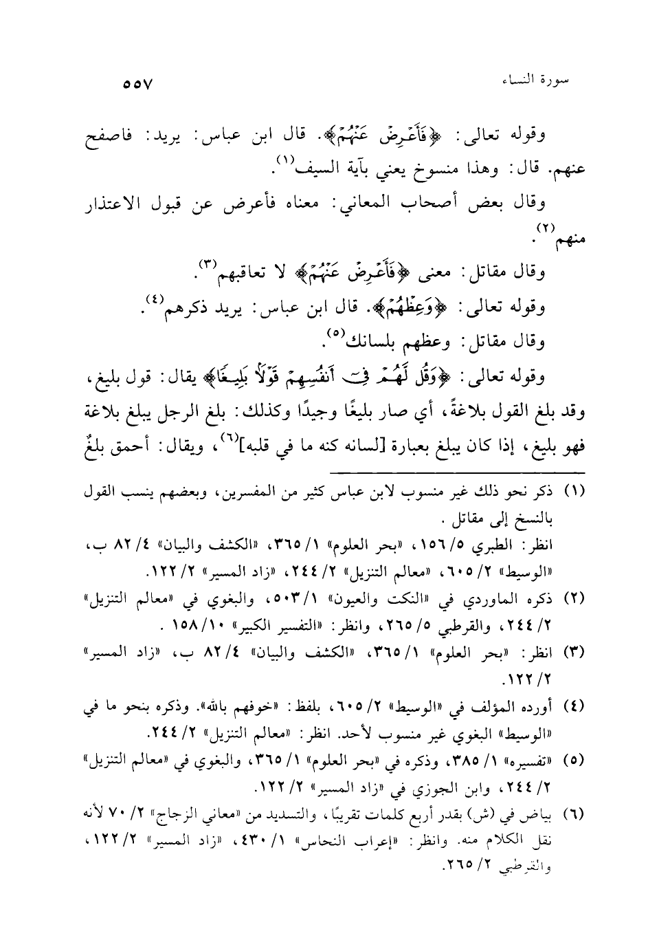 (¬6) انظر.: "معاني القرآن وإعرابه" 2/ 70، "معاني القرآن" للنحاس 2/ 128، "معالم التنزيل" 2/ 244.