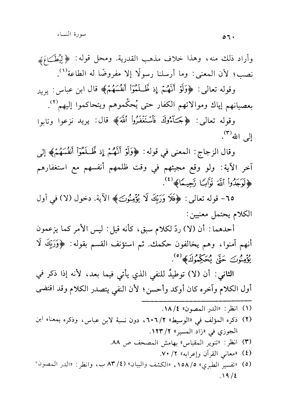 (¬2) أخرجه البخاري (4585) في التفسير سورة: النساء، باب: {فَلَا وَرَبِّكَ لَا يُؤْمِنُونَ حَتَّى يُحَكِّمُوك ..} 5/ 180، ومسلم (2357) في الفضائل، باب: وجوب اتباعه - صلى الله عليه وسلم -، والمؤلف في "الوسيط" 2/ 607، "أسباب النزول" ص167 - 168.