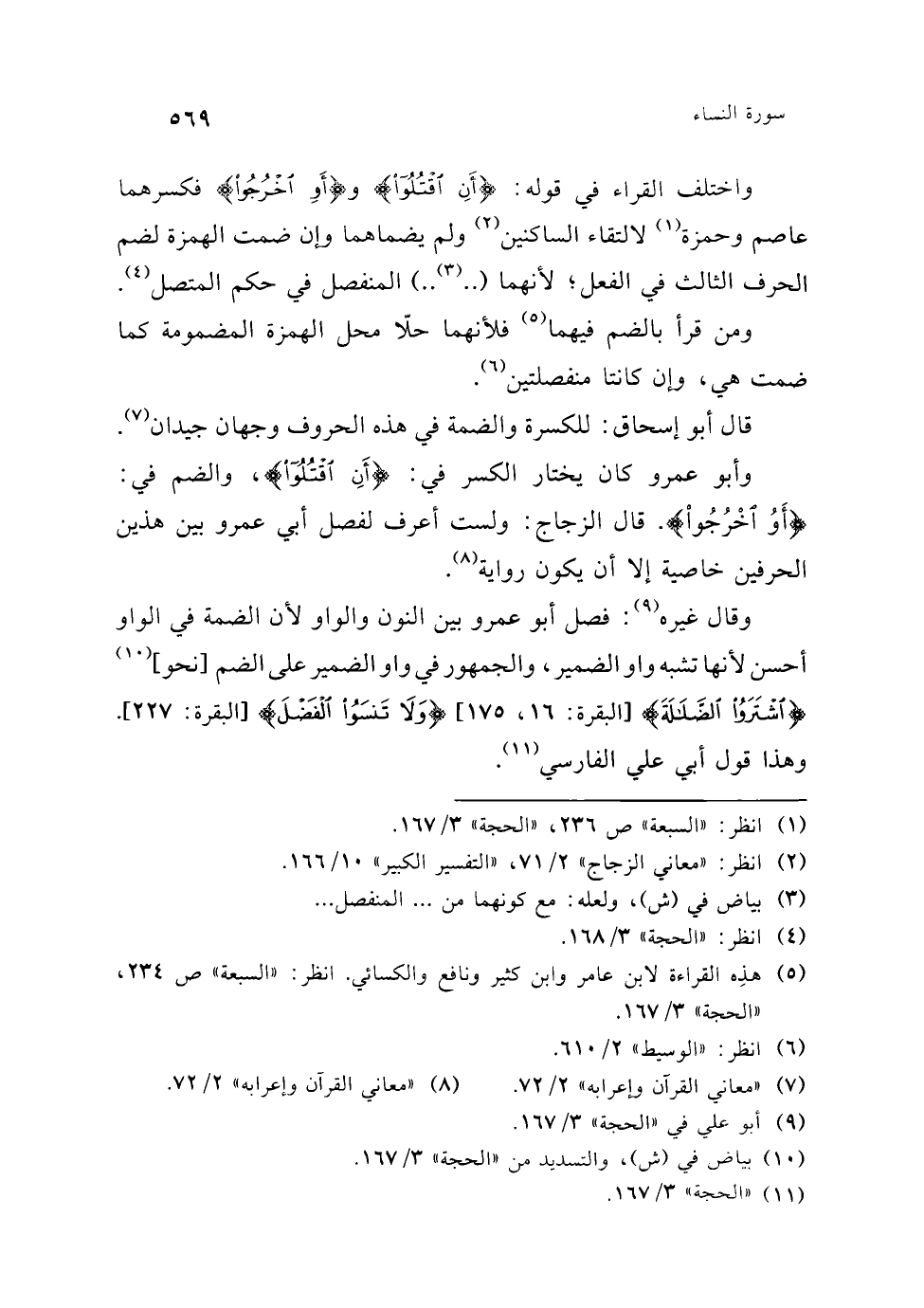 (¬1) انتهى من "الحجة" 3/ 168، 169، بتصرف. وانظر: "الوسيط" 2/ 611.
