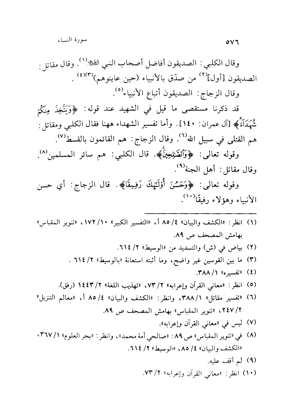 (¬6) انظر: الطبري 5/ 164، "بحر العلوم" 1/ 367، "الوسيط" 2/ 615 "معالم التنزيل" 2/ 248، "التفسير الكبير" 10/ 175.