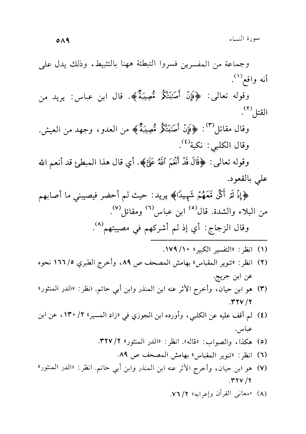 (¬5) "تنوير المقباس" بهامش المصحف ص 89، وانظر: "بحر العلوم" 1/ 367، "الكشف والبيان" 4/ 86 ب.