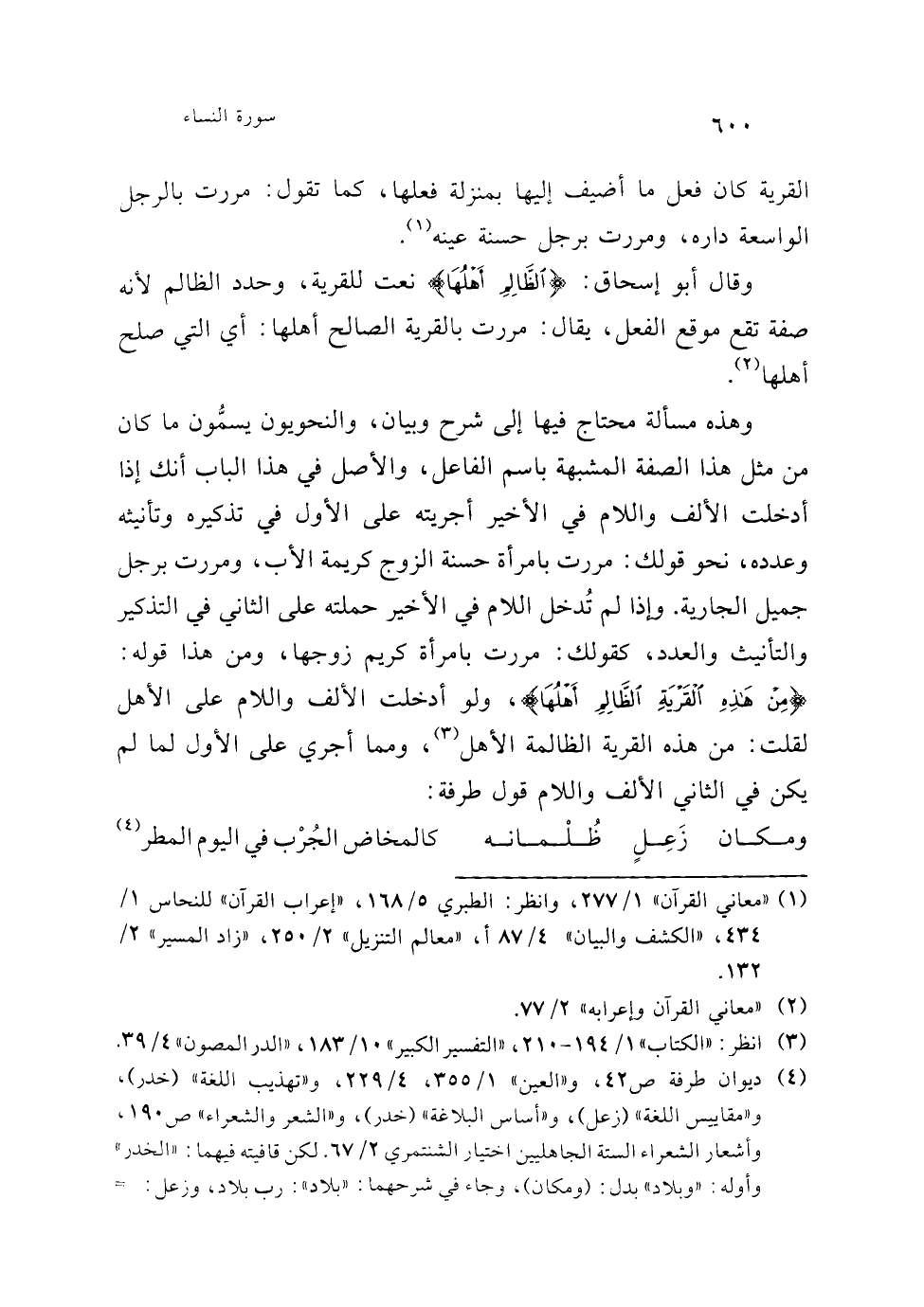 (¬7) "معاني القرآن وإعرابه" 2/ 77.