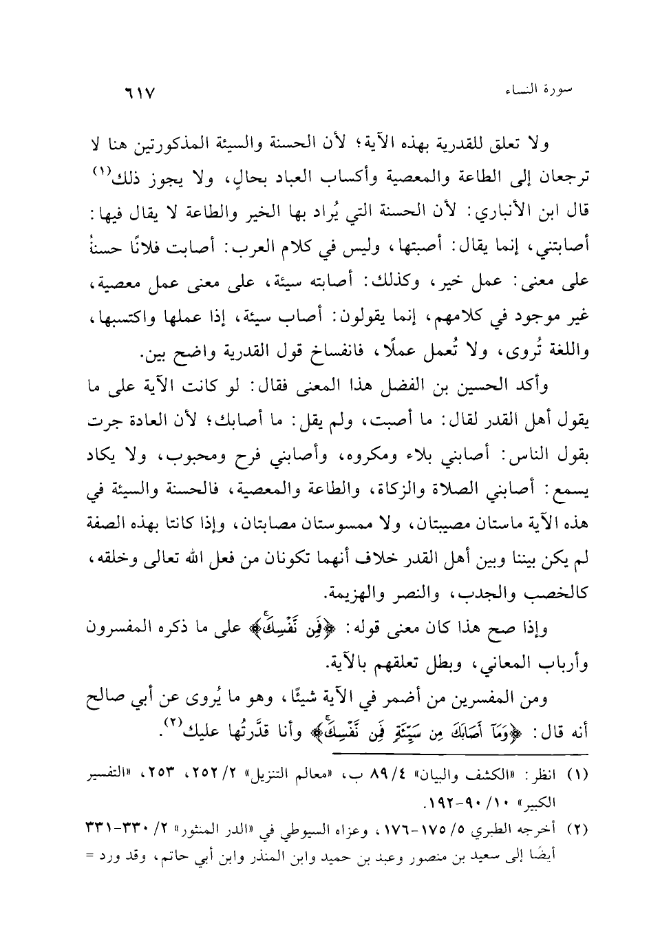 (¬7) انظر: "بحر العلوم" 1/ 370، "المحرر الوجيز" 4/ 144، "زاد المسير" 2/ 142، "التفسير الكبير"10/ 194.