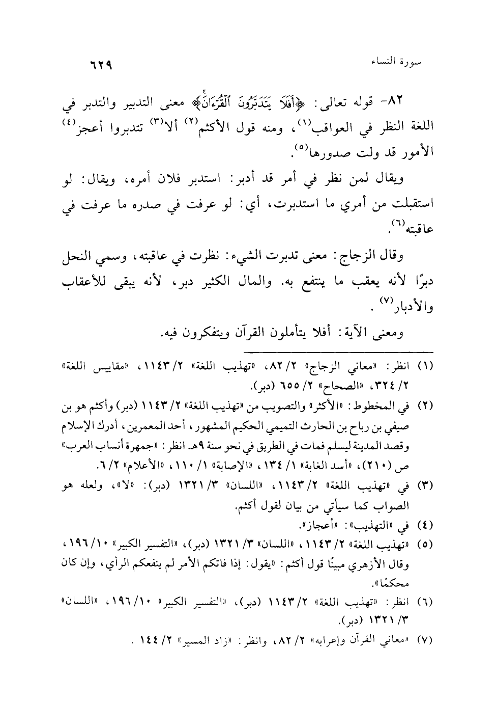 (¬1) ولشيخ الإسلام ابن تيمية كلام جيد يوضح هذا المعنى ويؤكده، فمما قال حول ذلك: "الخلاف بين السلف في التفسير قليل، وخلافهم في الأحكام أكثر من خلافهم في التفسير، وغالب ما يصح عنهم من الخلاف يرجع إلى اختلاف تنوع لا اختلاف تضاد، وذلك صنفان: أحدهما: أن يُعبر كل واحد منهم عن المراد بعبارة غير عبارة صاحبة تدل على معنى في المسمى غير المعنى الآخر مع اتحاد المسمَّى ... كما قيل في اسم السيف: الصارم والمهند، وذلك مثل أسماء الله الحسنى وأسماء رسوله - صلى الله عليه وسلم - وأسماء القرآن.