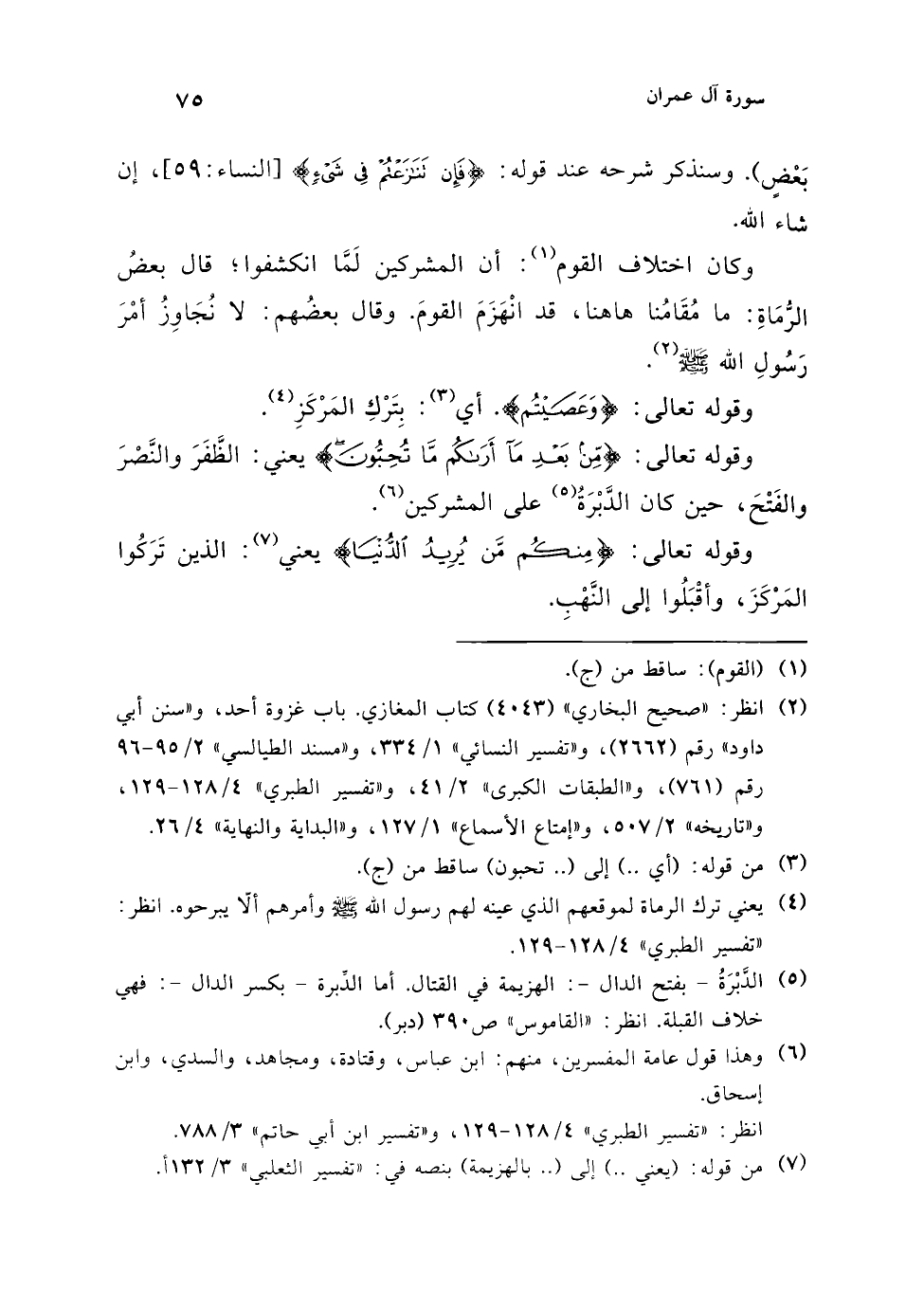 (¬5) لم أقف على مصدر قوله بهذا النص. وقد أورد ابن الجوزي في "الزاد" 1/ 477، عنه قولَه: (إذ عفا عنهم جميعًا).