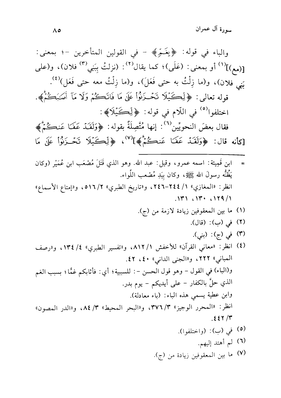 (¬6) انظر: "تفسير الطبري" 4/ 140، 141، و"النكت والعيون" 1/ 430.