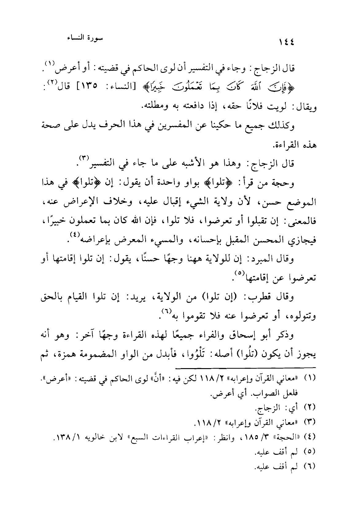 (¬2) "معاني القرآن وإعرابه" 2/ 119.