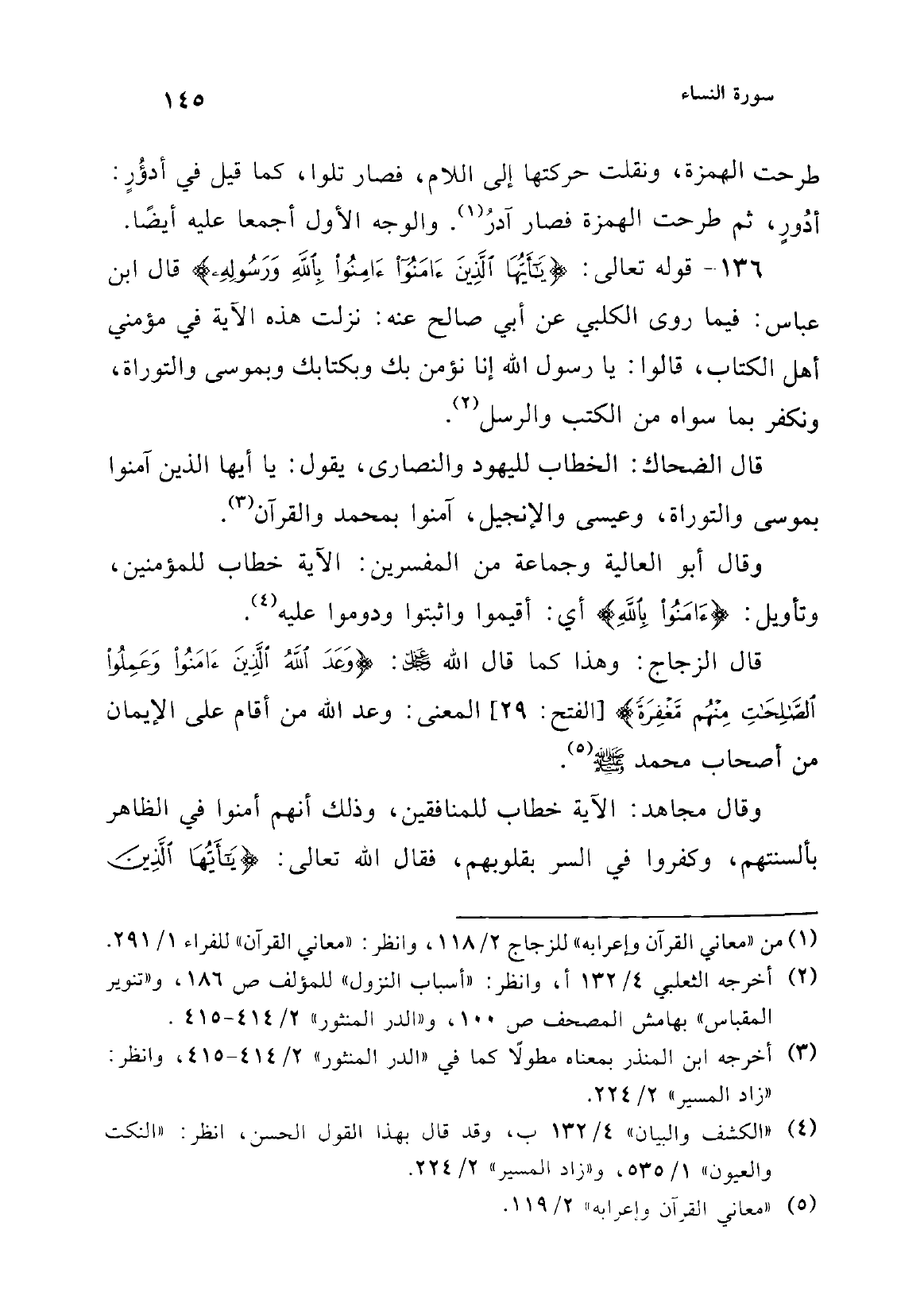 (¬5) أخرج القول عنهما الطبري 5/ 327، وانظر: "النكت والعيون" 1/ 536 - 537، و"زاد المسير" 2/ 225 و"الدر المنثور" 2/ 415.