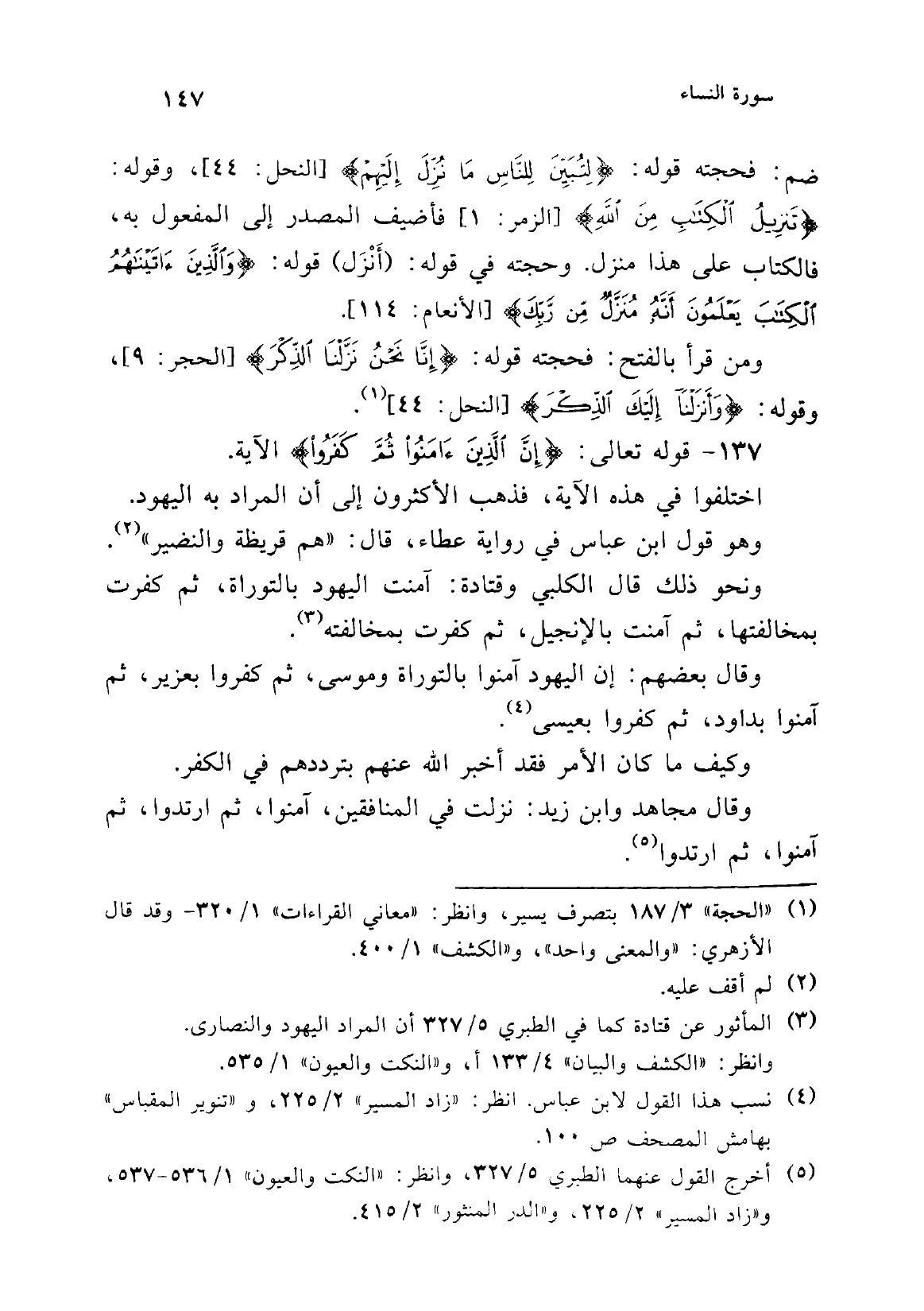 (¬6) "معاني القرآن وإعرابه" 2/ 120.