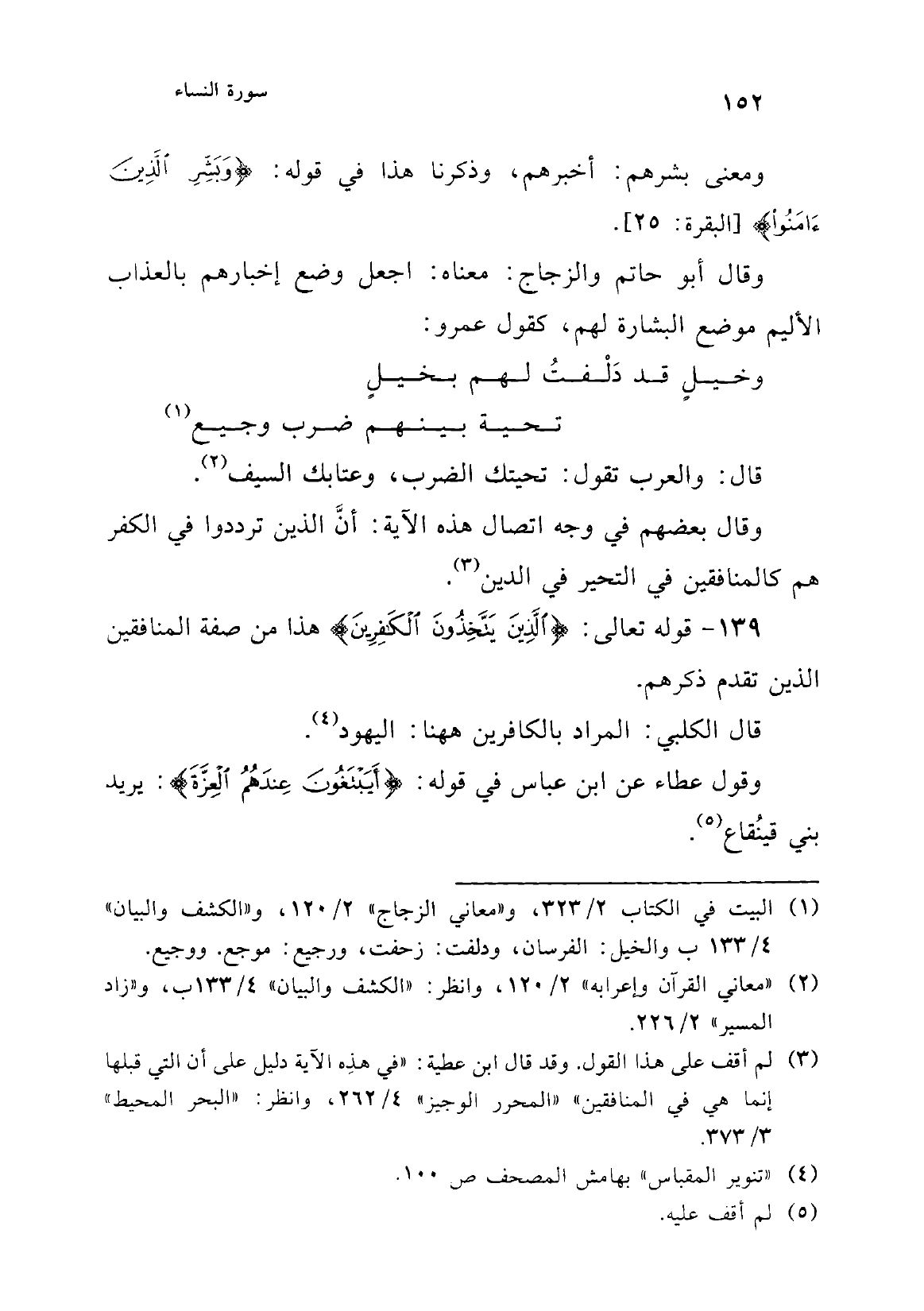 (¬1) من "الكشف والبيان" 4/ 134 أبتصرف، وانظر: "بحر العلوم" 1/ 398، والبغوي 2/ 301، و"الكشاف" 1/ 305، و"زاد المسير" 2/ 228، و"الدر المنثور" 2/ 415.