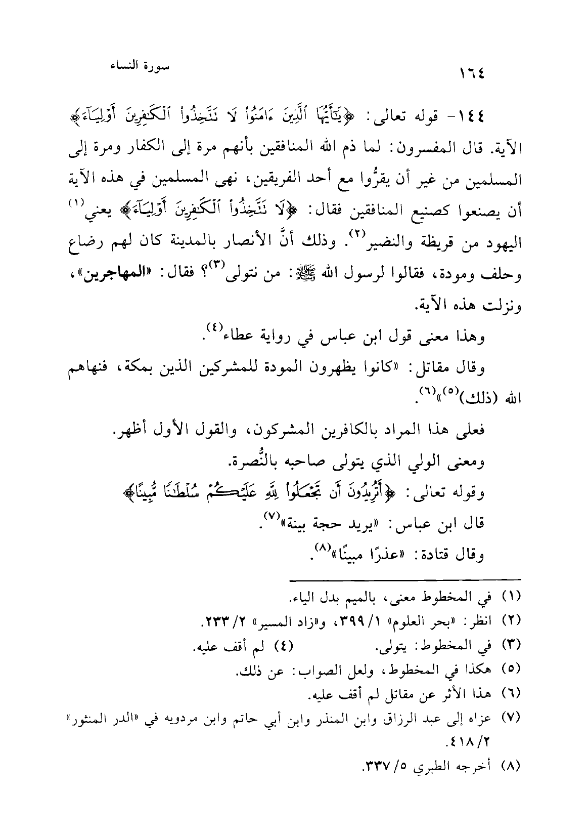 (¬3) أخرجه الطبري بسنده 5/ 338، ولكن بالسياق واللفظ التالي: