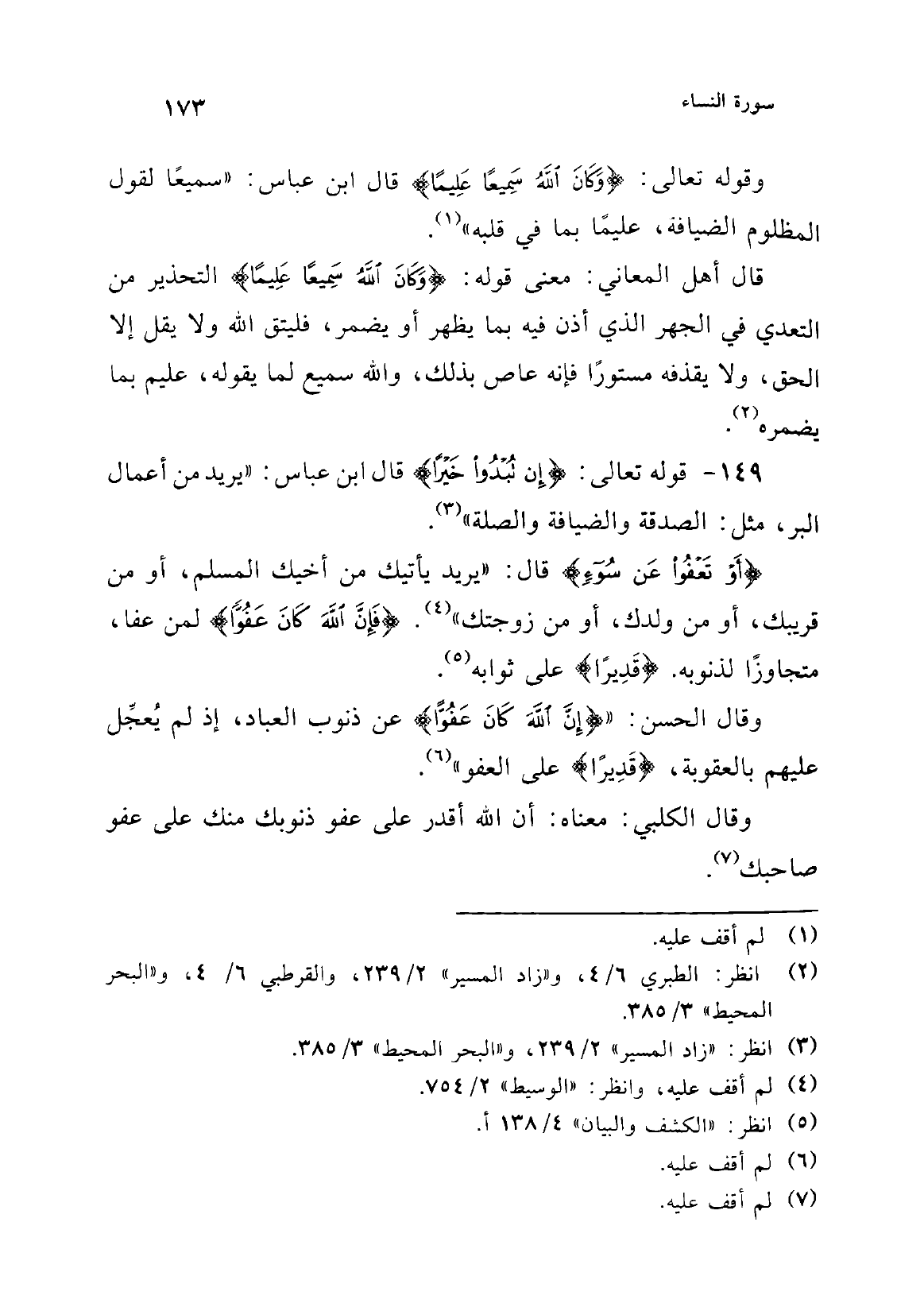 (¬4) انظر: الطبري 6/ 7، و"بحر العلوم" 1/ 4014، و"الكشف والبيان" 2/ 138أ، و"أسباب النزول" للمؤلف ص189، و"لباب النقول" ص85.