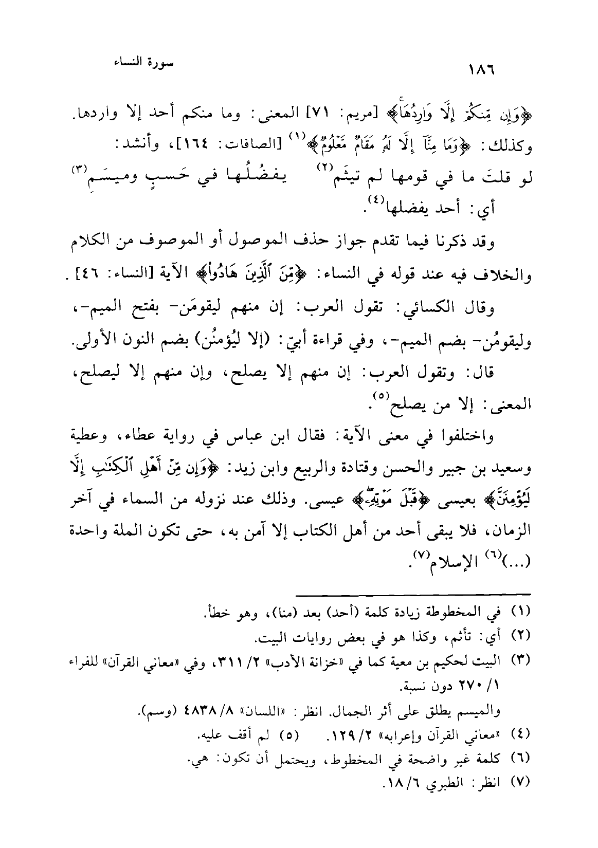 (¬3) "معاني الفراء" 1/ 295، والطبري 6/ 20 في الأثر عن ابن عباس من طريق سعيد ابن جبير.