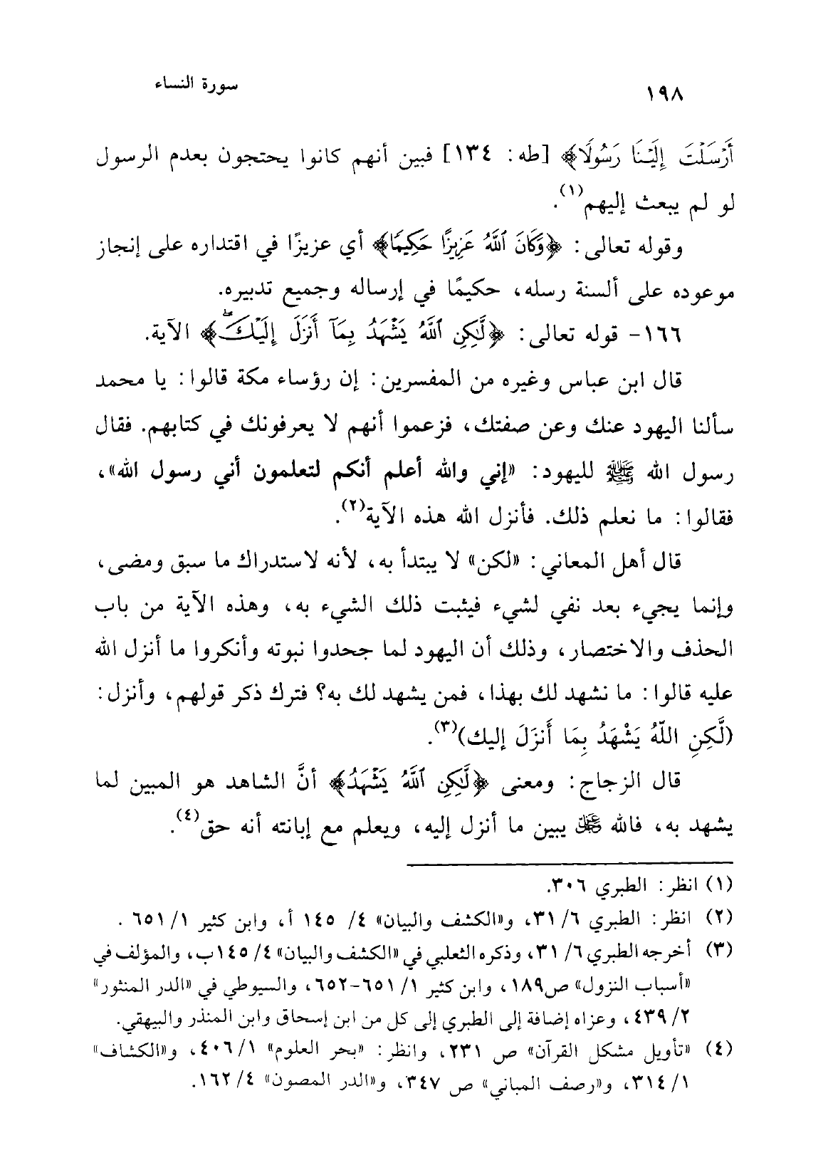 وهذه الآية تسلية للنبي - صلى الله عليه وسلم - عن شهادة أهل الكتاب، فشهادة الله عز وجل والملائكة (مع ما) (¬4) فيه من الحجة على جهل من قعد عن هذه الشهادة (¬5).