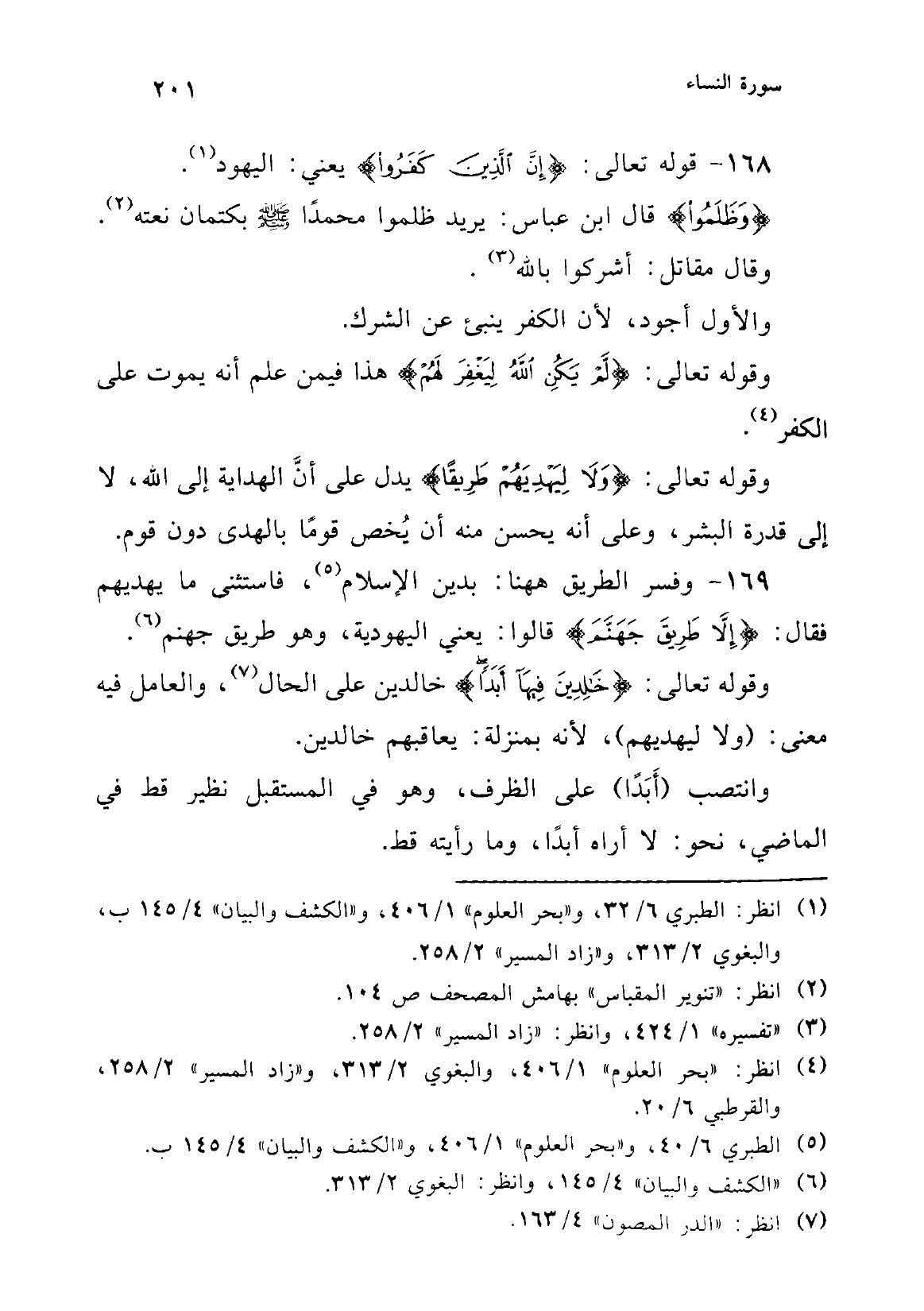(¬7) "ديوانه" ص 341، والكتاب 1/ 283، والطبري 6/ 34.