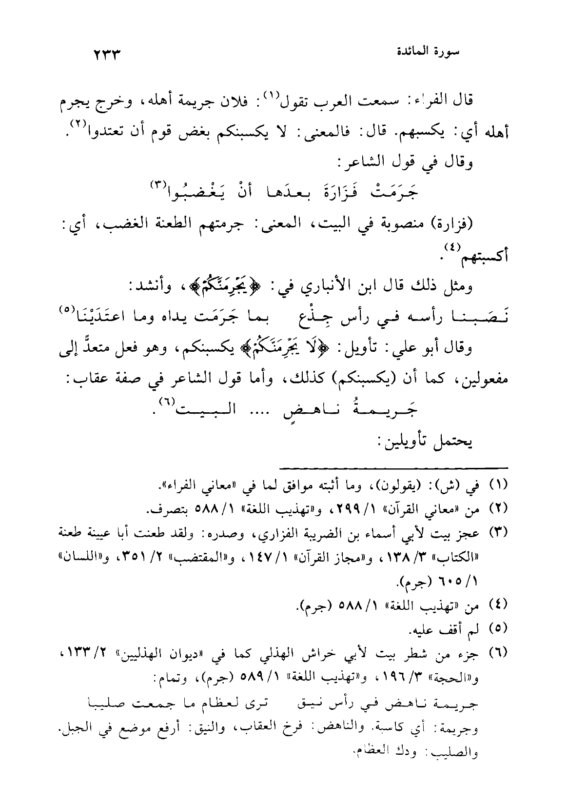 (¬3) "تهذيب اللغة" 2/ 1941 (شنأ).