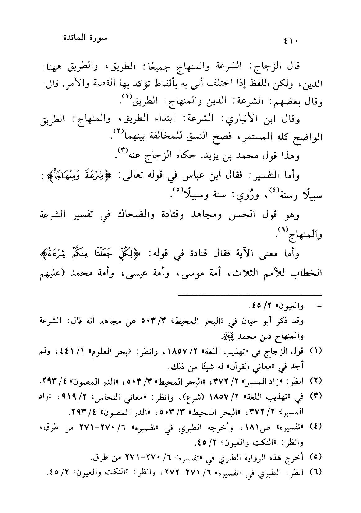 (¬6) "تفسيره" 1/ 482، "زاد المسير" 2/ 374.