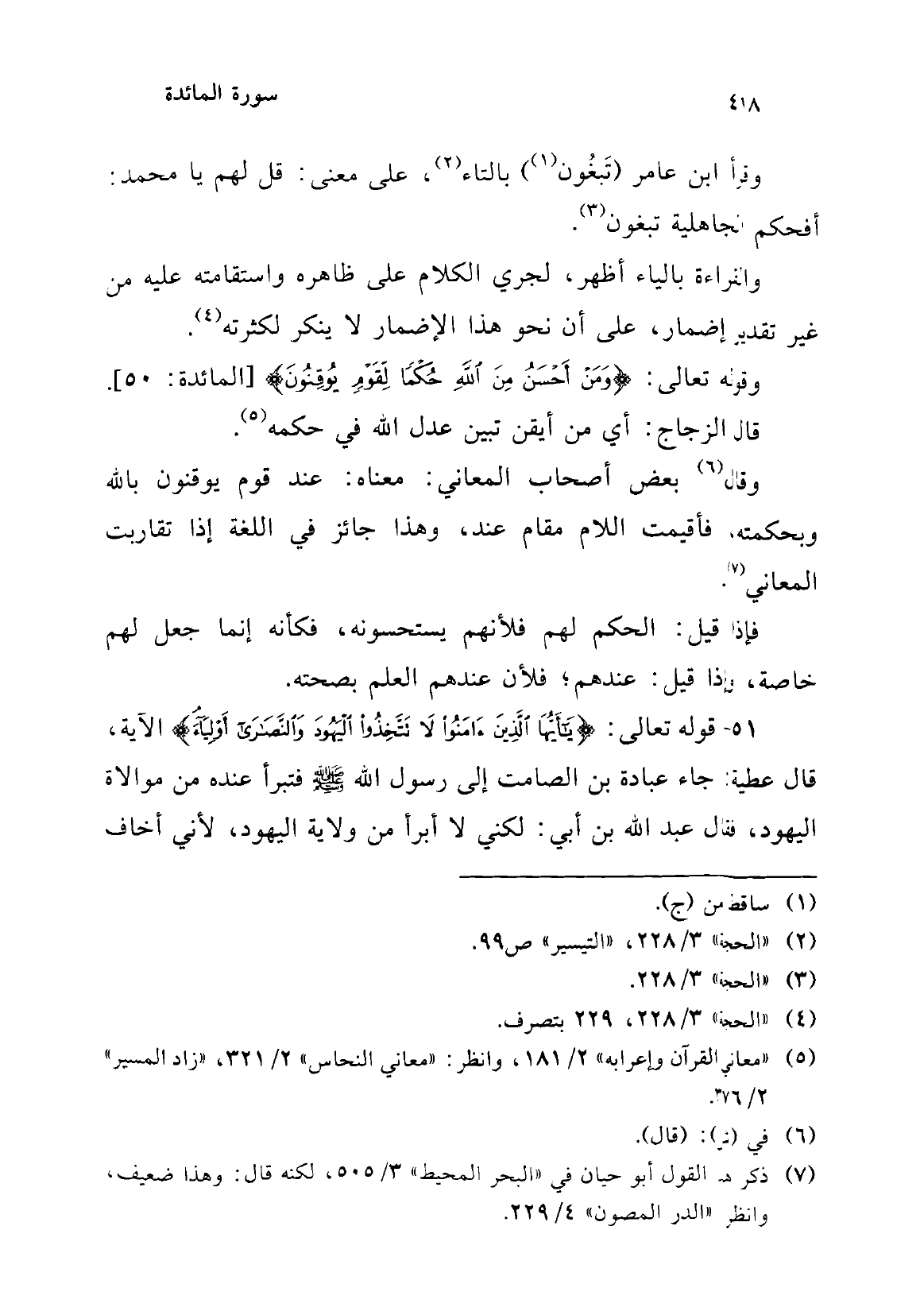 (¬2) انظر: "تفسير الطبري" 6/ 278 - 279، "زاد المسير" 2/ 379، "الدر المنثور" 2/ 516.