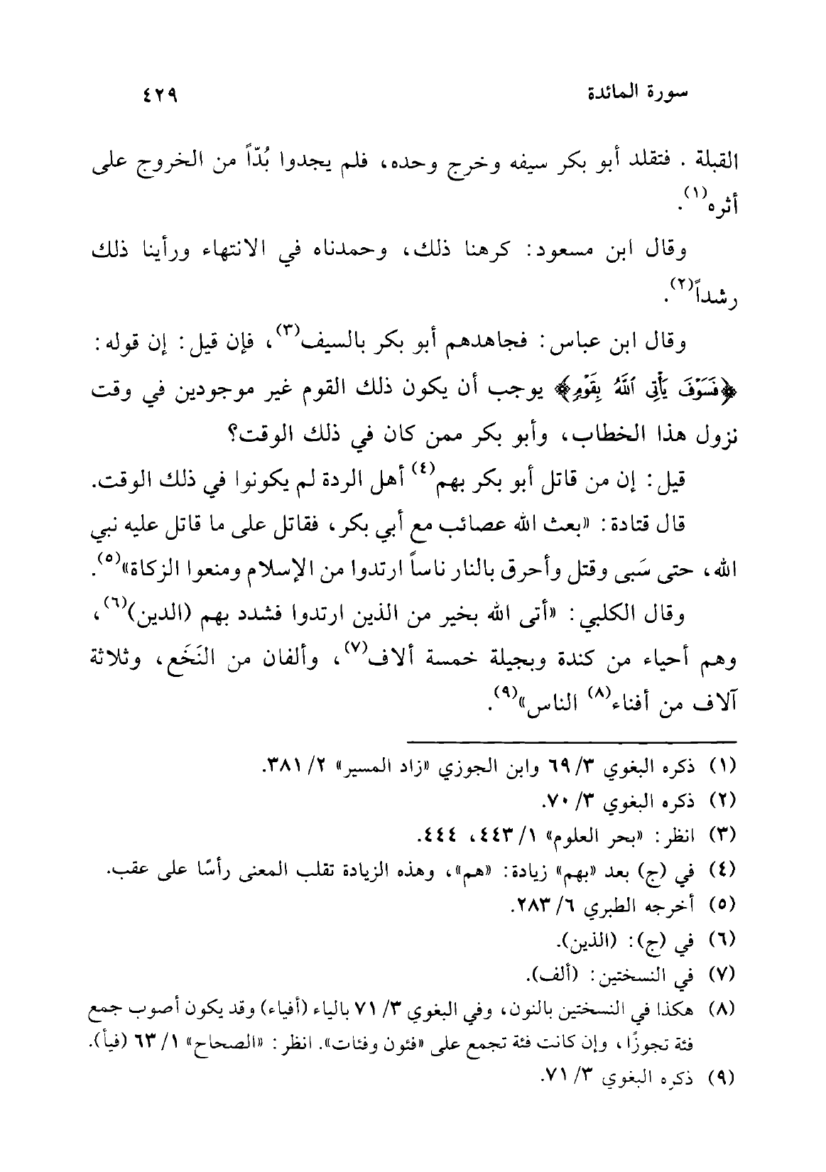 قد فسر الآية وبين أن المراد بالقوم المذكور فيها الأشعرية، فليست إلا الفرقة المعروفة بالأشعرية الذين ينتسبون في مذهبهم إلى أبي الحسن الأشعري (¬1).