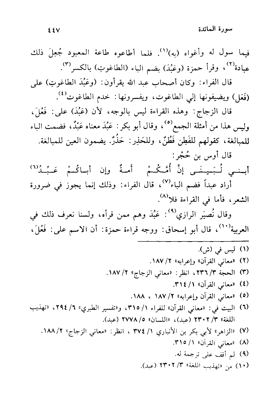 (¬4) "معاني القرآن وإعرابه" 2/ 189.