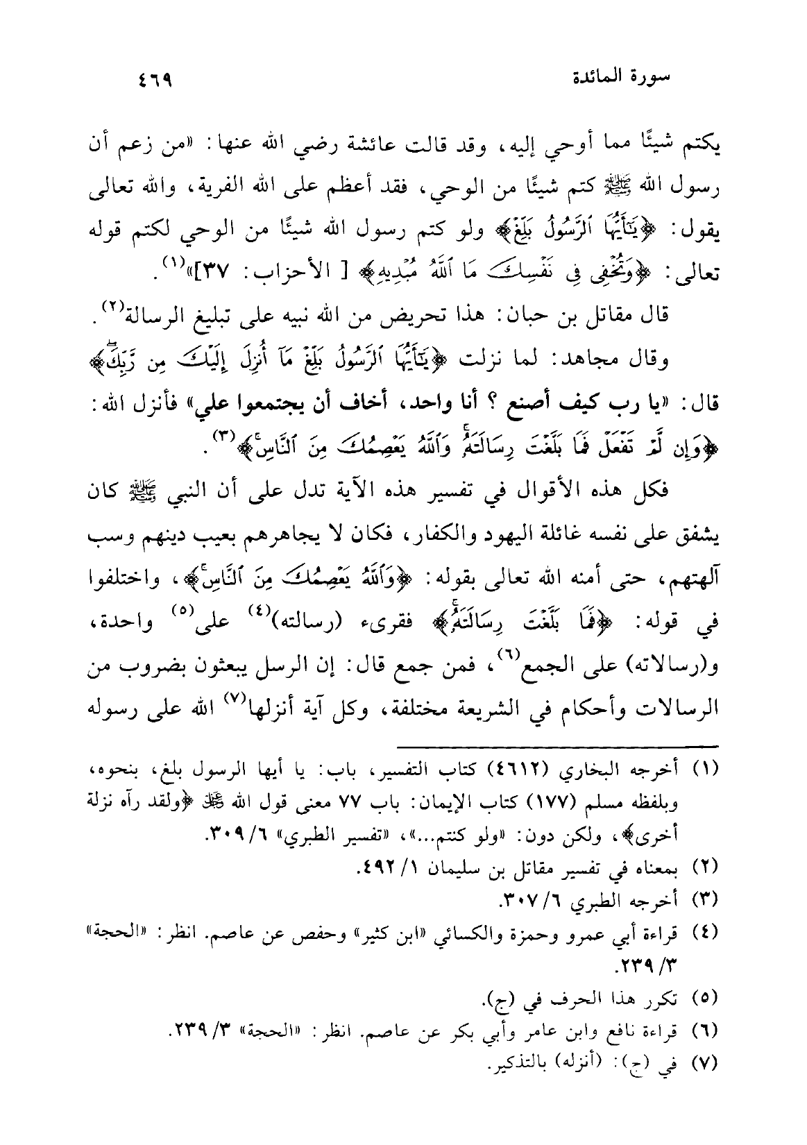 68 - قوله تعالى: {قُلْ يَا أَهْلَ الْكِتَابِ لَسْتُمْ عَلَى شَيْءٍ}، ذهب بعض المفسرين إلى أن الذي أُمر رسول الله بتبليغه هذه الآية (¬3)، قال مقاتل: لما نزل: {وَاللهُ يَعْصِمُكَ مِنَ النَّاسِ} أمن النبي - صلى الله عليه وسلم - فأخبره الله ما يبلغ فقال: {قُلْ يَا أَهْلَ الْكِتَابِ لَسْتُمْ عَلَى شَيْءٍ} (¬4).