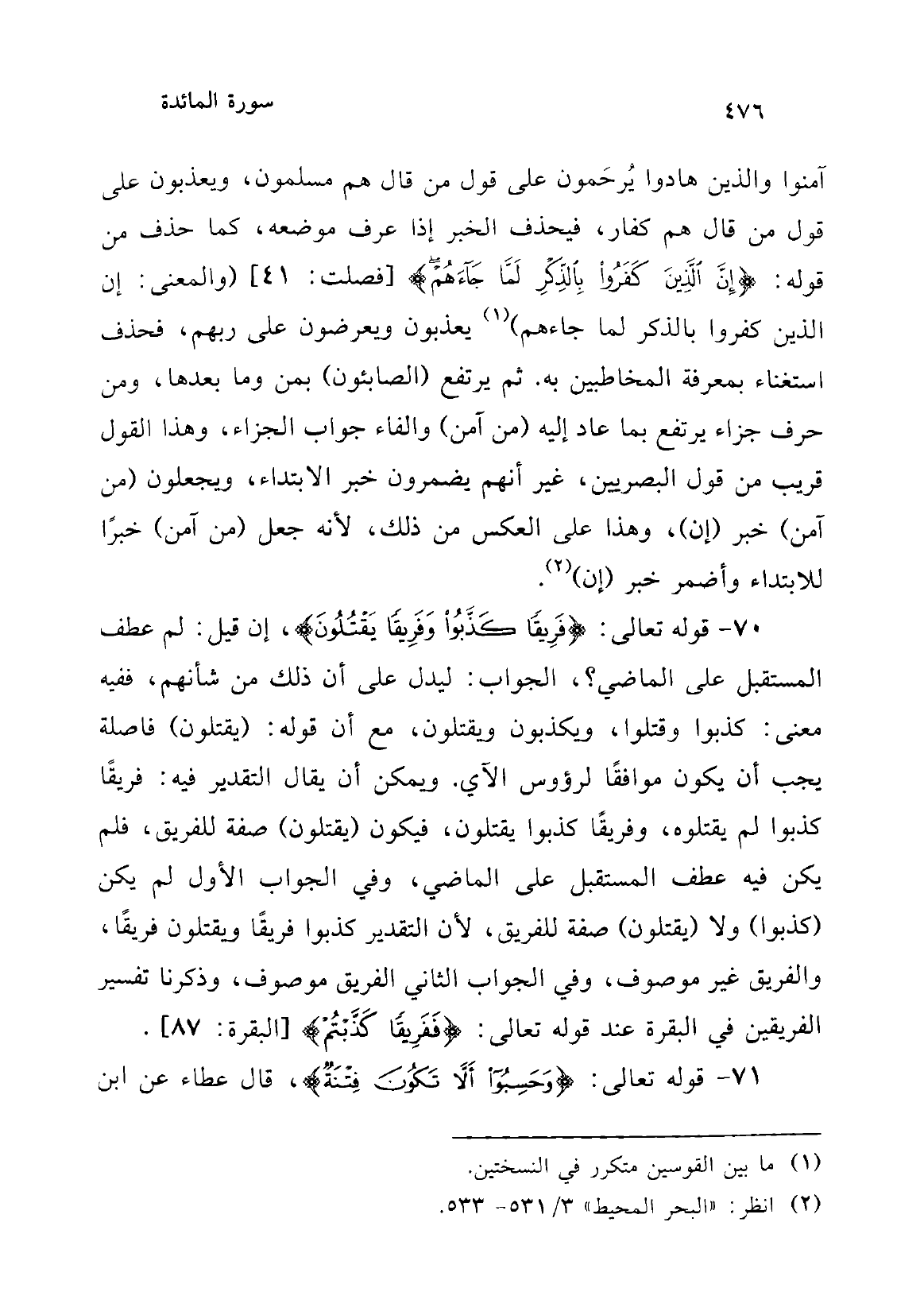 (¬1) سبق التنبيه أن مثل هذا التعبير غير لائق في جانب كلام الله عز وجل، لئلا يتوهم أن في القرآن زائدًا.