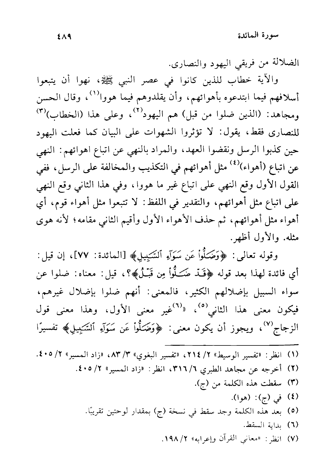 (¬6) انظر: "معاني القرآن وإعرابه" 2/ 199 , "زاد المسير" 2/ 407.