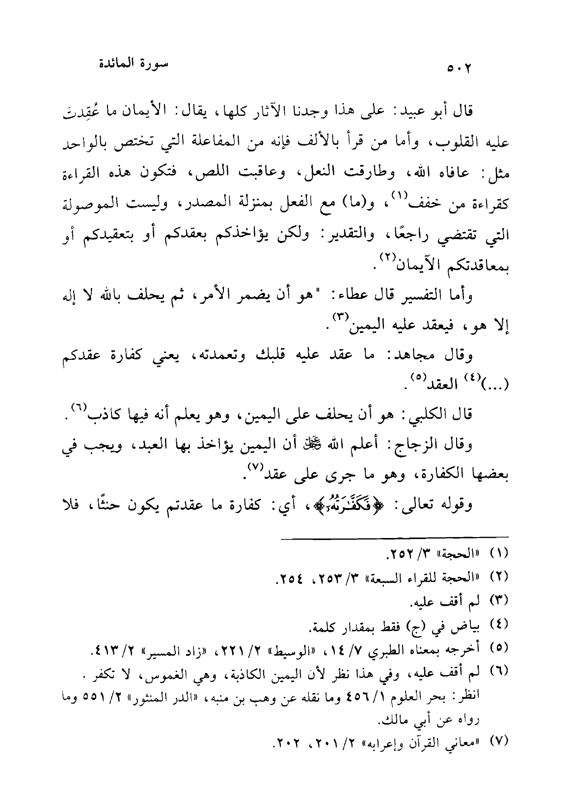 (¬5) انظر: الطبري 7/ 23 - 24، "بحر العلوم" 1/ 456، "النكت والعيون" 2/ 61، "زاد المسير" 2/ 414.