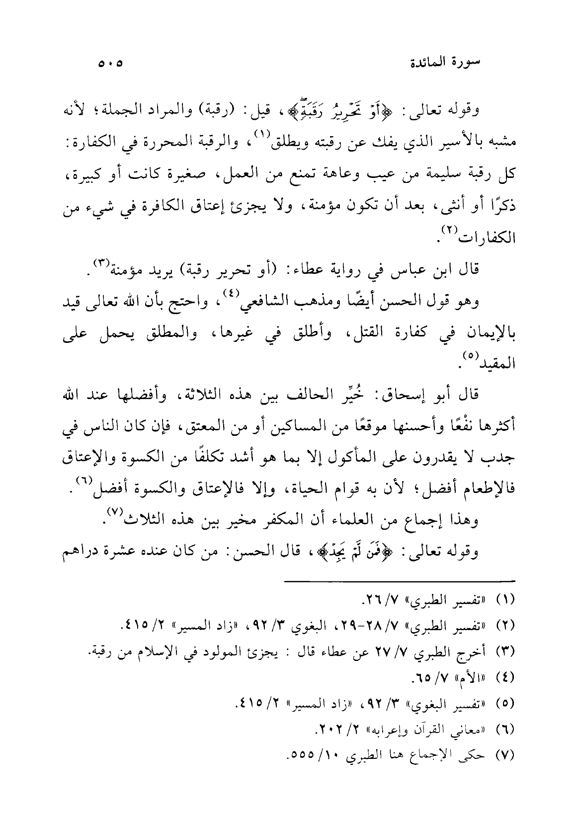 (¬6) "الأم" 7/ 66، والبغوي 3/ 93، و"زاد المسير" 2/ 415، وابن كثير 2/ 103.