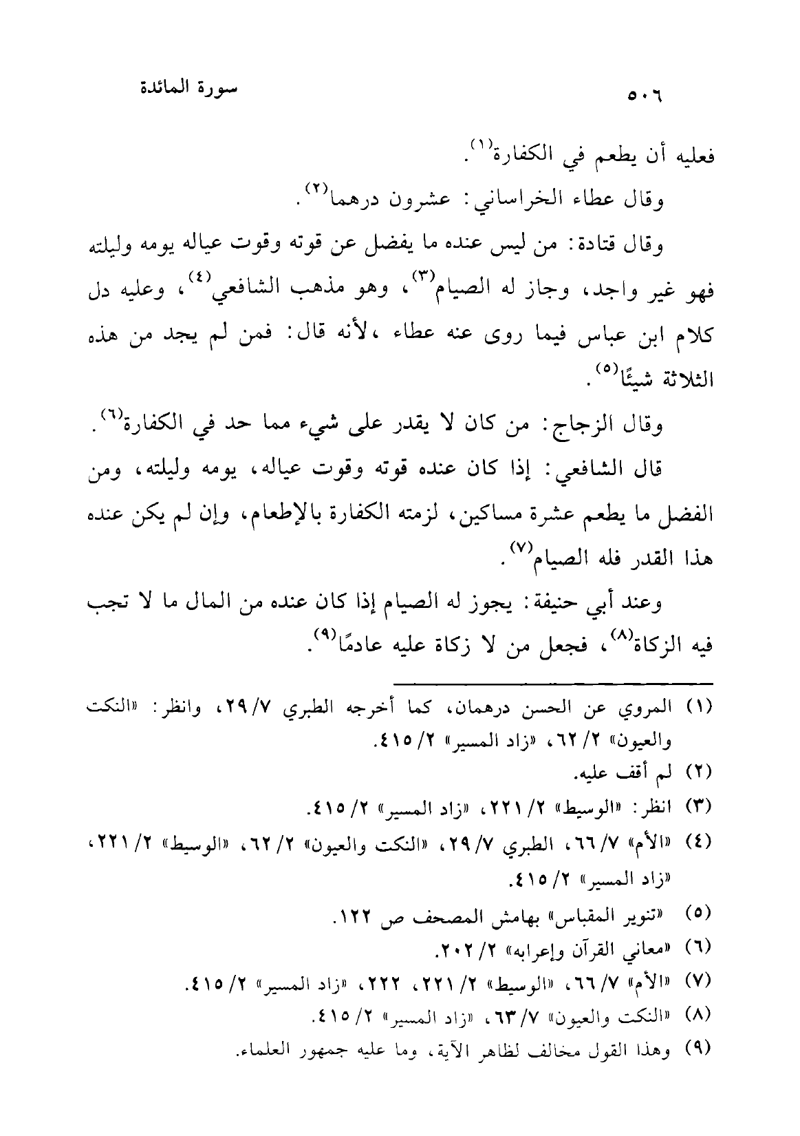 (¬6) انظر: "الوسيط" 2/ 223، "تنوير المقباس" بهامش المصحف ص 123.