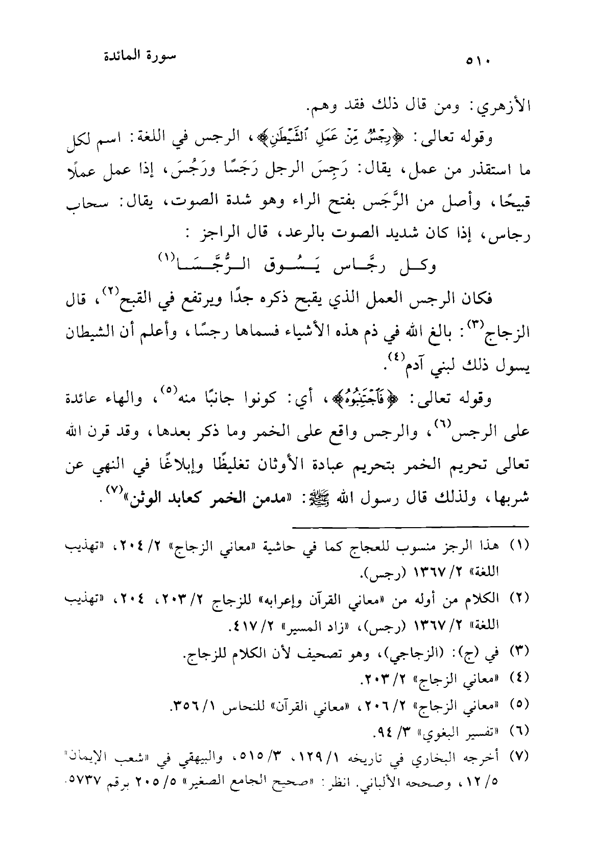 (¬2) أخرجه أبو داود (3670) كتاب: الأشربة، باب: في تحريم الخمر، والترمذي (3049) كتاب: التفسير، باب: من سورة المائدة، والطبري 7/ 33 - 34.