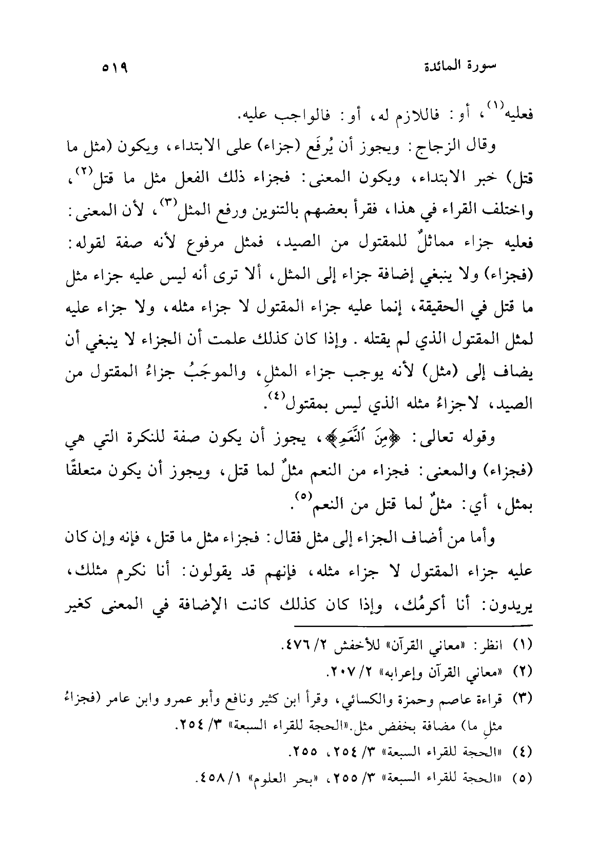 (¬6) "بحر العلوم" 1/ 458، "النكت والعيون" 2/ 67، القرطبي 6/ 310.