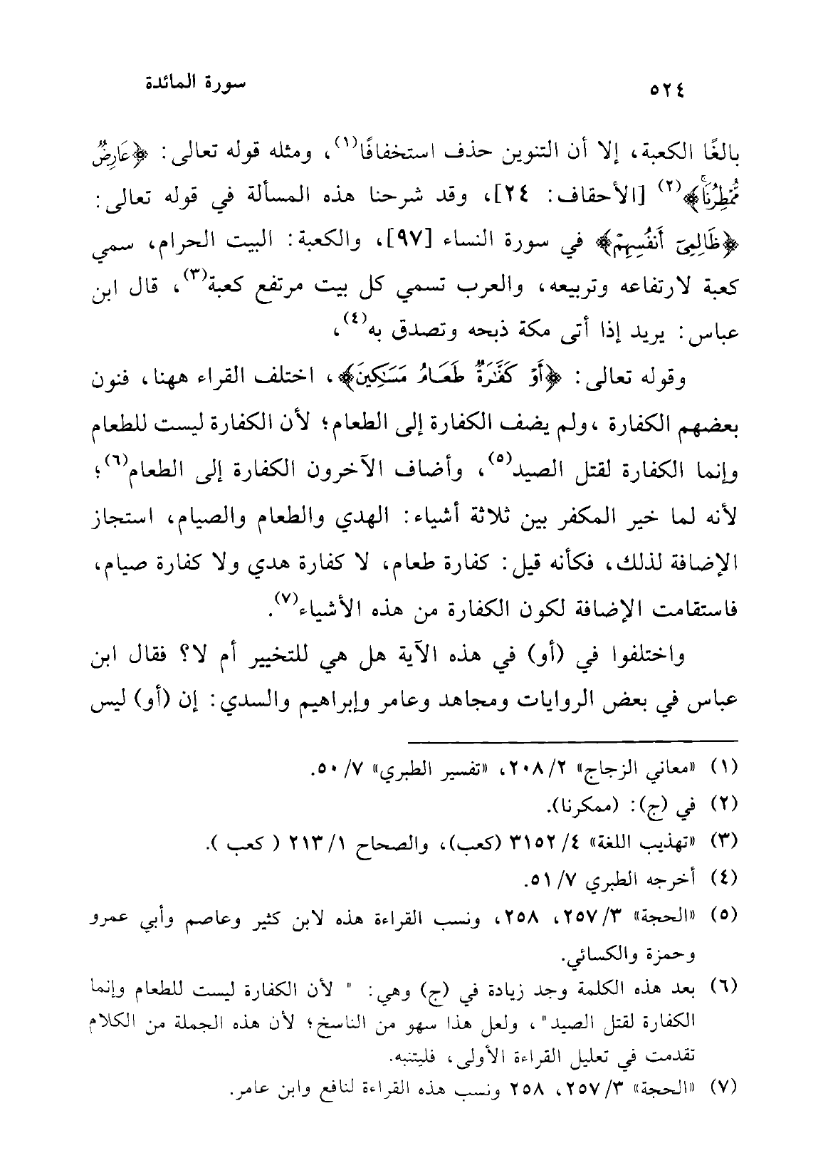 (¬6) "معاني القرآن وإعرابه" 2/ 208.