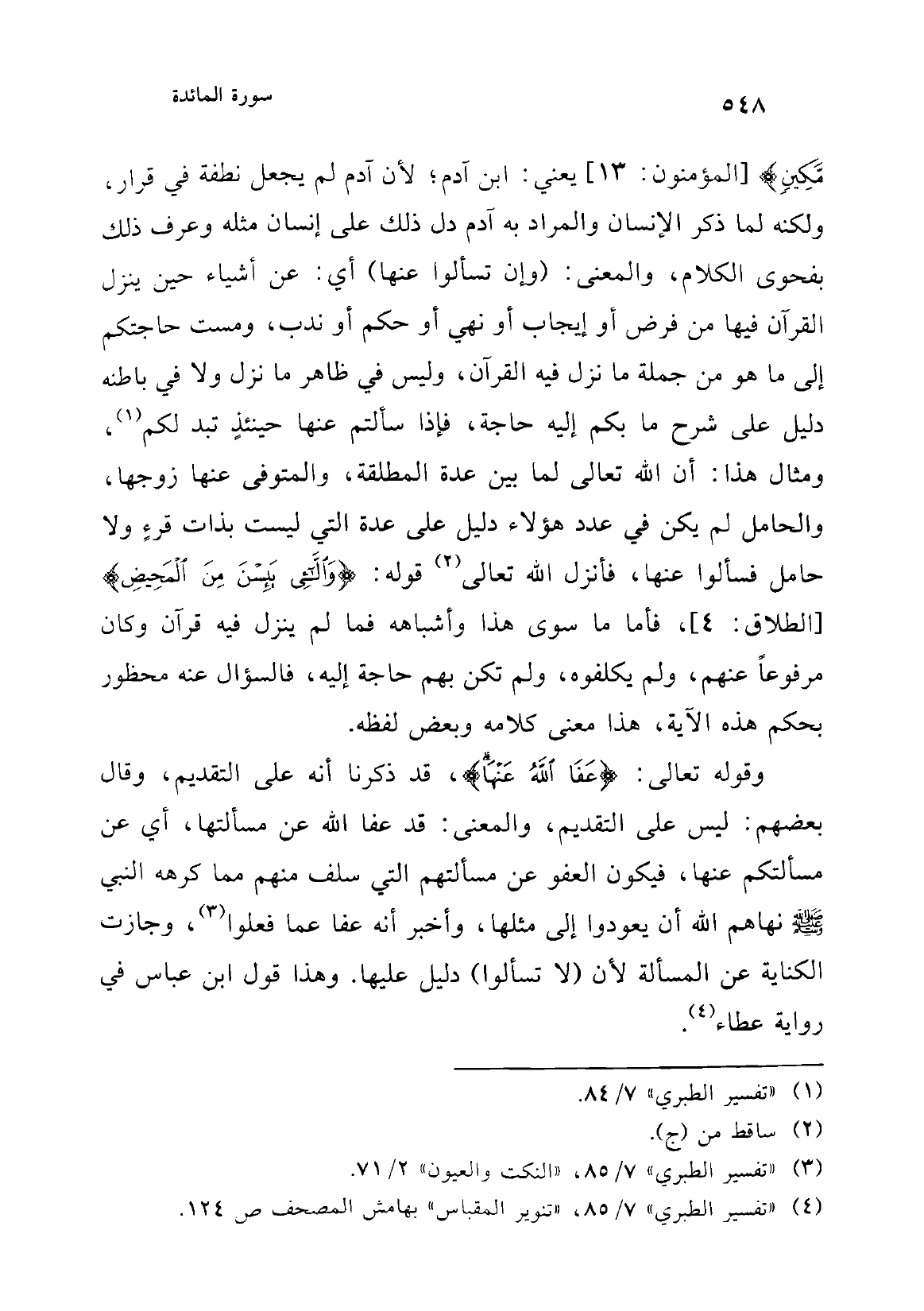 عنه أولى بهم، وأصلح لهم (¬1)، وذلك مثل سؤال قوم موسى: {أَرِنَا اللَّهَ جَهْرَةً} [النساء: 153] وقول بني إسرائيل: {لِنَبِيٍّ لَهُمُ ابْعَثْ لَنَا مَلِكًا نُقَاتِلْ فِي سَبِيلِ اللَّهِ}، قال الله عز وجل: {فَلَمَّا كُتِبَ عَلَيْهِمُ الْقِتَالُ تَوَلَّوْا إِلَّا قَلِيلًا} [البقرة: 246] وقالوا: {أَنَّى يَكُونُ لَهُ الْمُلْكُ عَلَيْنَا وَنَحْنُ أَحَقُّ بِالْمُلْكِ مِنْهُ} [البقرة: 247] ألا تراهم قد سألوا ثم كفروا، وهذا معنى كلام أبي علي الجرجاني (¬2) وبعض لفظه.