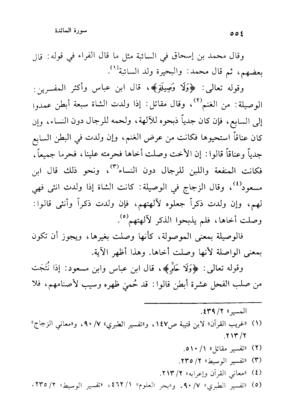 (¬4) "تفسير الطبري" 7/ 93، "معاني القرآن وإعرابه" للنحاس 2/ 373، "تفسير الوسيط" 2/ 236، "زاد المسير" 2/ 440، "تفسير ابن كثير" 2/ 123.