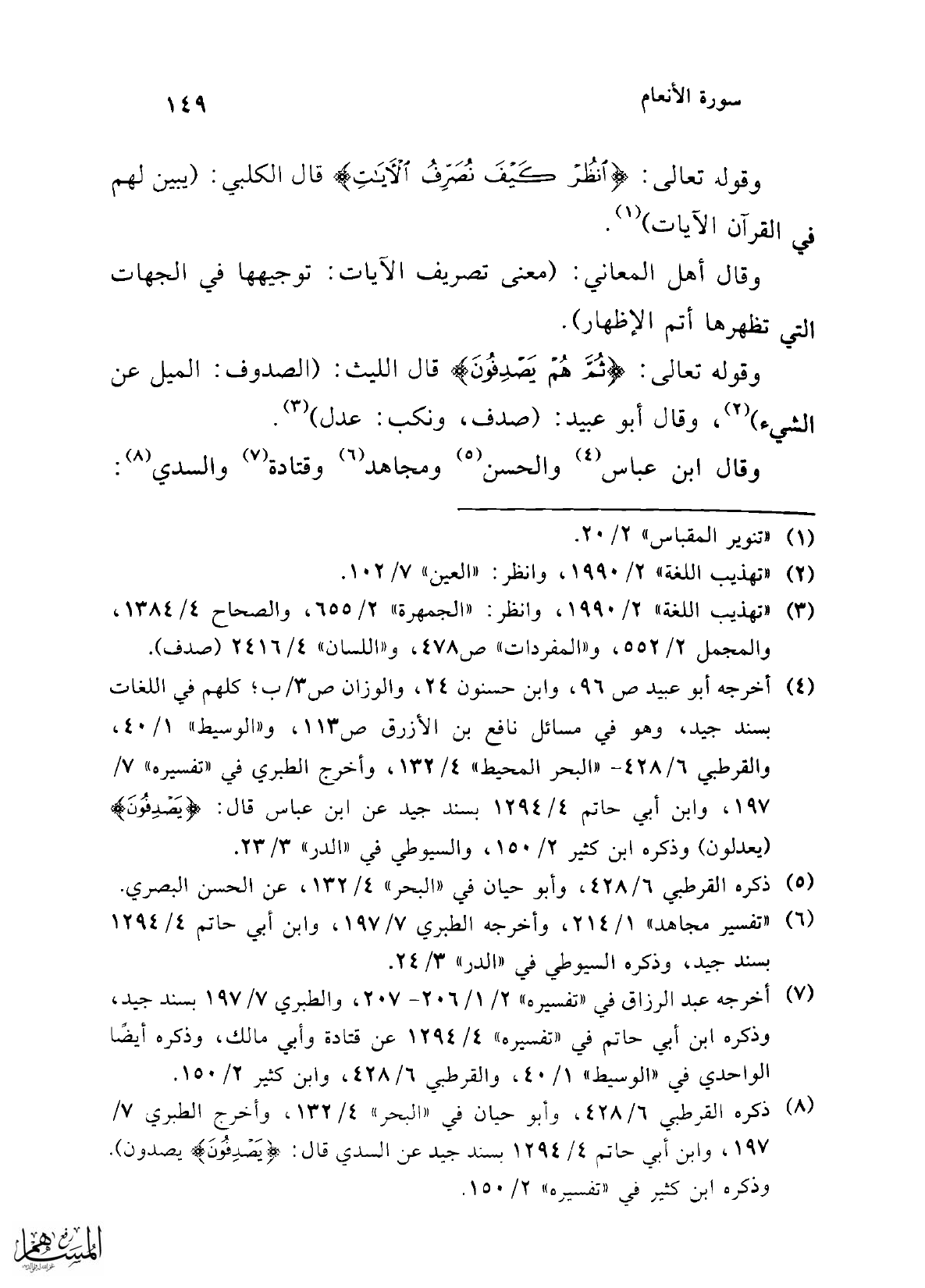 (¬4) أخرجه أبو عبيد ص 96، وابن حسنون 24، والوزان ص 3/ ب، كلهم في اللغات بسند جيد، وهو في مسائل نافع بن الأزرق ص 113، و"الوسيط" 1/ 40، والقرطبي 6/ 428 - "البحر المحيط" 4/ 132، وأخرج الطبري في "تفسيره" 7/ 197، وابن أبي حاتم 4/ 1294 بسند جيد عن ابن عباس قال: {يَصْدِفُونَ} (يعدلون) وذكره ابن كثير 2/ 150، والسيوطي في "الدر" 3/ 23.