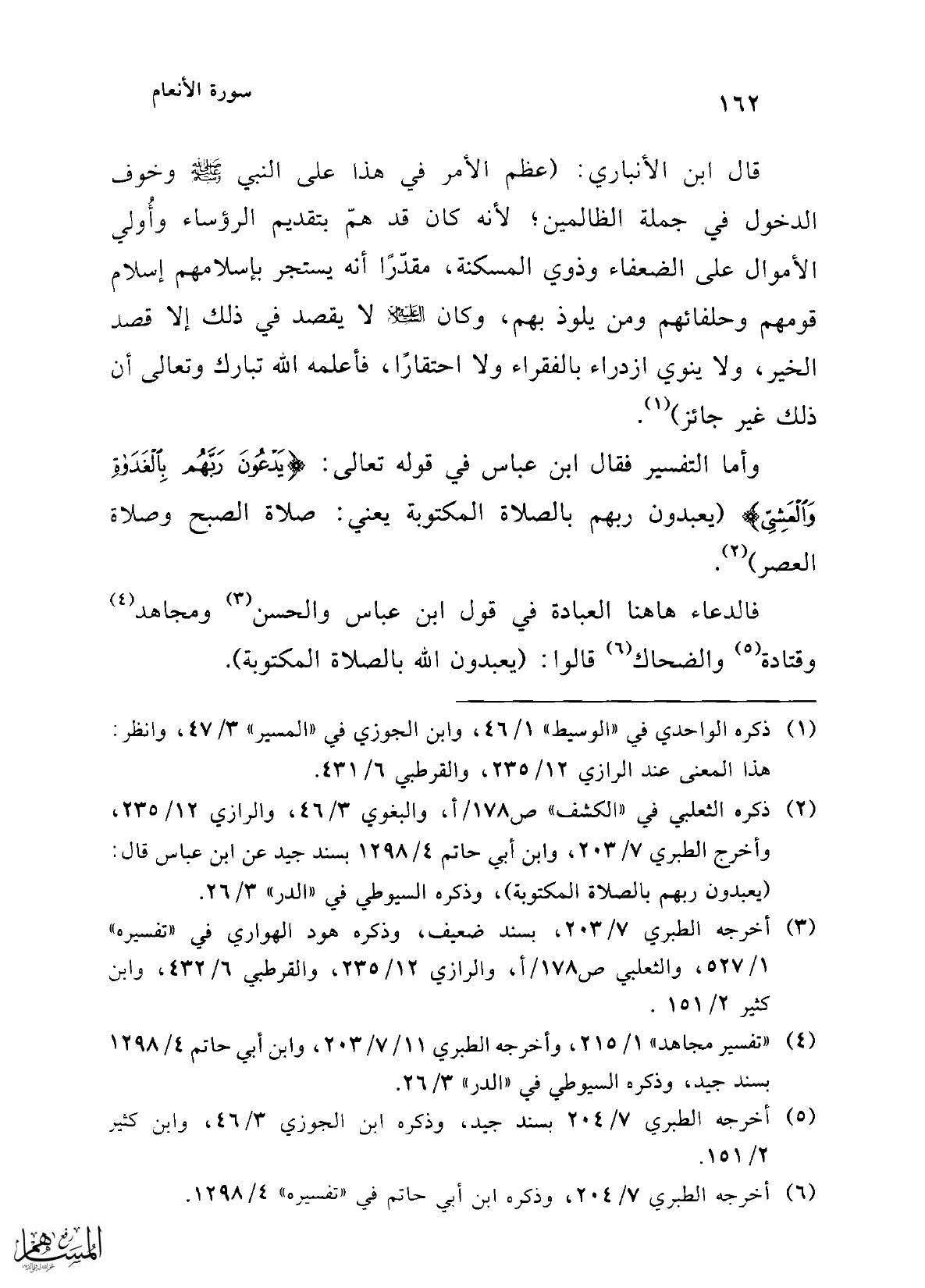 وأما التفسير فقال ابن عباس في قوله تعالى: {يَدْعُونَ رَبَّهُمْ بِالْغَدَاةِ وَالْعَشِيِّ} (يعبدون ربهم بالصلاة المكتوبة يعني: صلاة الصبح وصلاة العصر) (¬2).