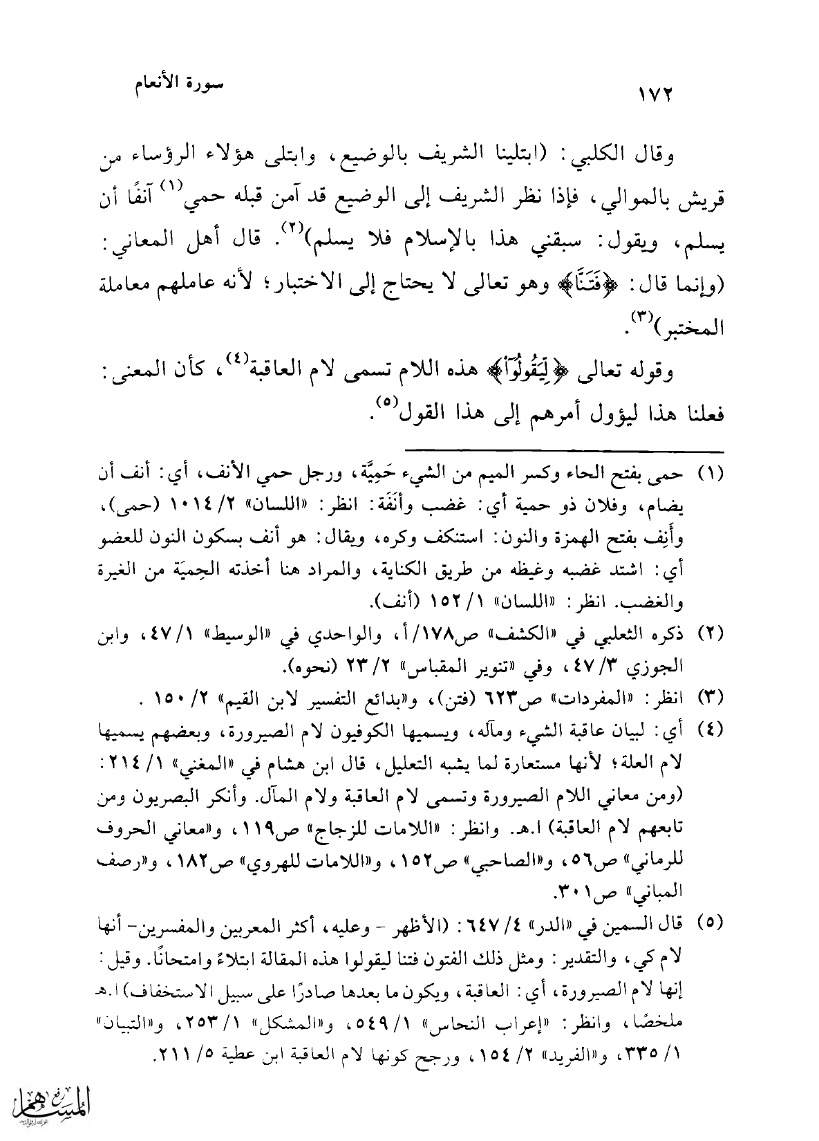 (¬5) قال السمين في "الدر" 4/ 647: (الأظهر -وعليه، أكثر المعربين والمفسرين- أنها لام كي، والتقدير: ومثل ذلك الفتون فتنا ليقولوا هذه المقالة ابتلاءً وامتحانًا. وقيل: إنها لام الصيرورة، أي: العاقبة، ويكون ما بعدها صادرا على سبيل الاستخفاف) ا. هـ ملخصًا، وانظر: "إعراب النحاس" 1/ 549، و"المشكل" 1/ 253، و"التبيان" 1/ 335، و"الفريد" 2/ 154، ورجح كونها لام العاقبة ابن عطية 5/ 211.
