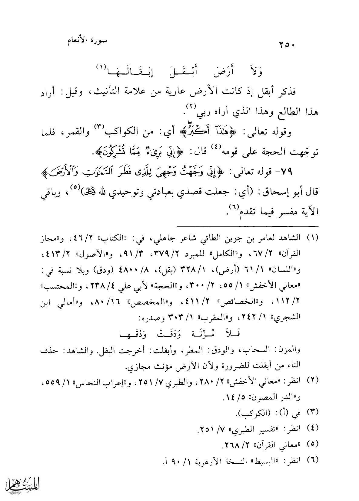 79 - قوله تعالى: {إِنِّي وَجَّهْتُ وَجْهِيَ لِلَّذِي فَطَرَ السَّمَاوَاتِ وَالْأَرْضَ} قال أبو إسحاق: (أي: جعلت قصدي بعبادتي وتوحيدي لله عز وجل) (¬5)، وباقي الآية مفسر فيما تقدم (¬6).