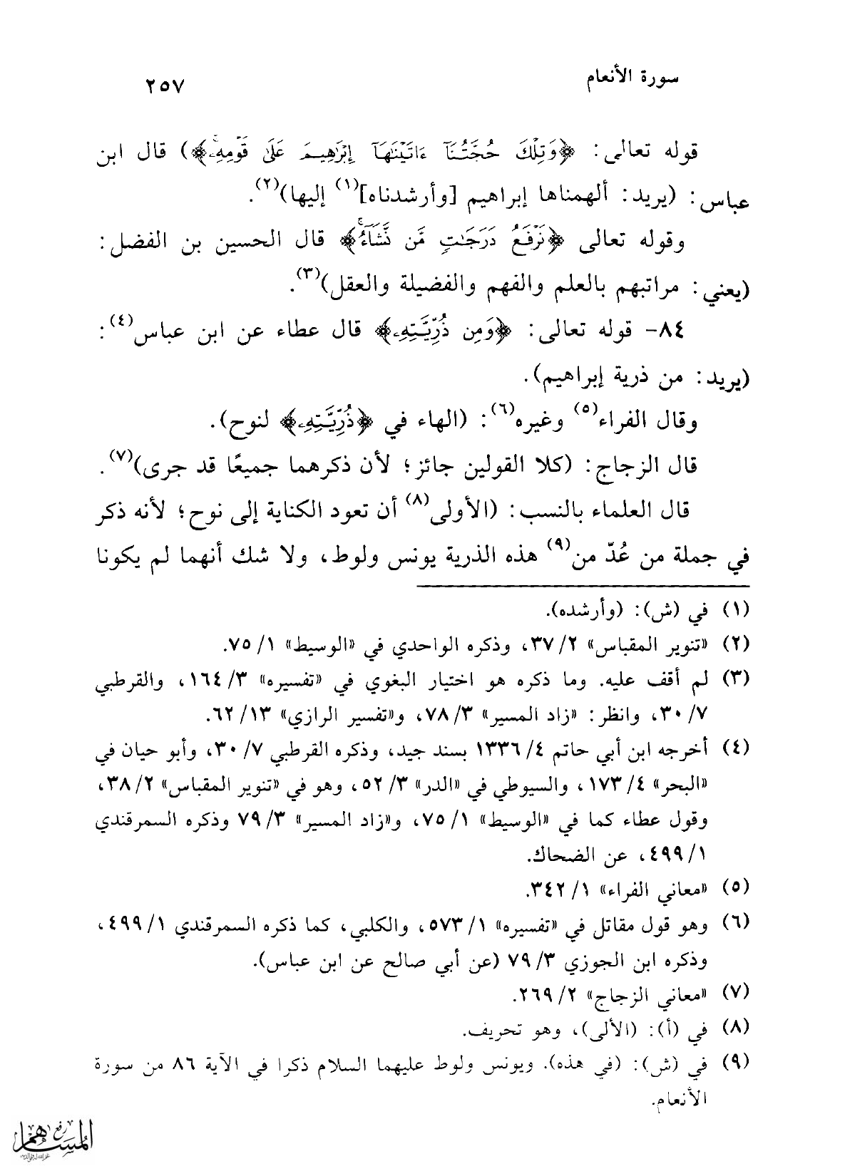 84 - قوله تعالى: {وَمِنْ ذُرِّيَّتِهِ} قال عطاء عن ابن عباس (¬4): (يريد: من ذرية إبراهيم).