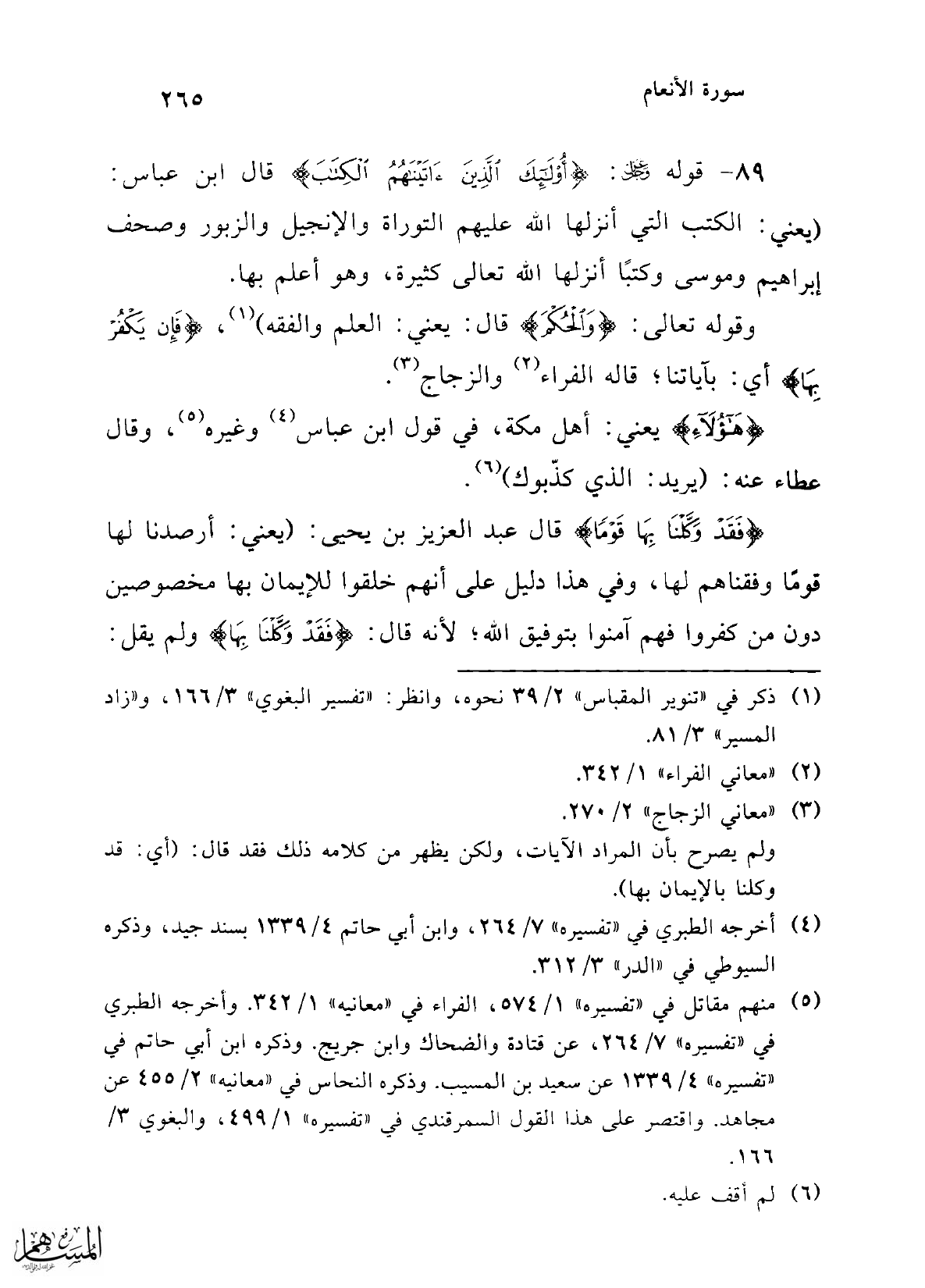 89 - قوله عز وجل: {أُولَئِكَ الَّذِينَ آتَيْنَاهُمُ الْكِتَابَ} قال ابن عباس: (يعني: الكتب التي أنزلها الله عليهم التوراة والإنجيل والزبور وصحف إبراهيم وموسى وكتبًا أنزلها الله تعالى كثيرة، وهو أعلم بها.